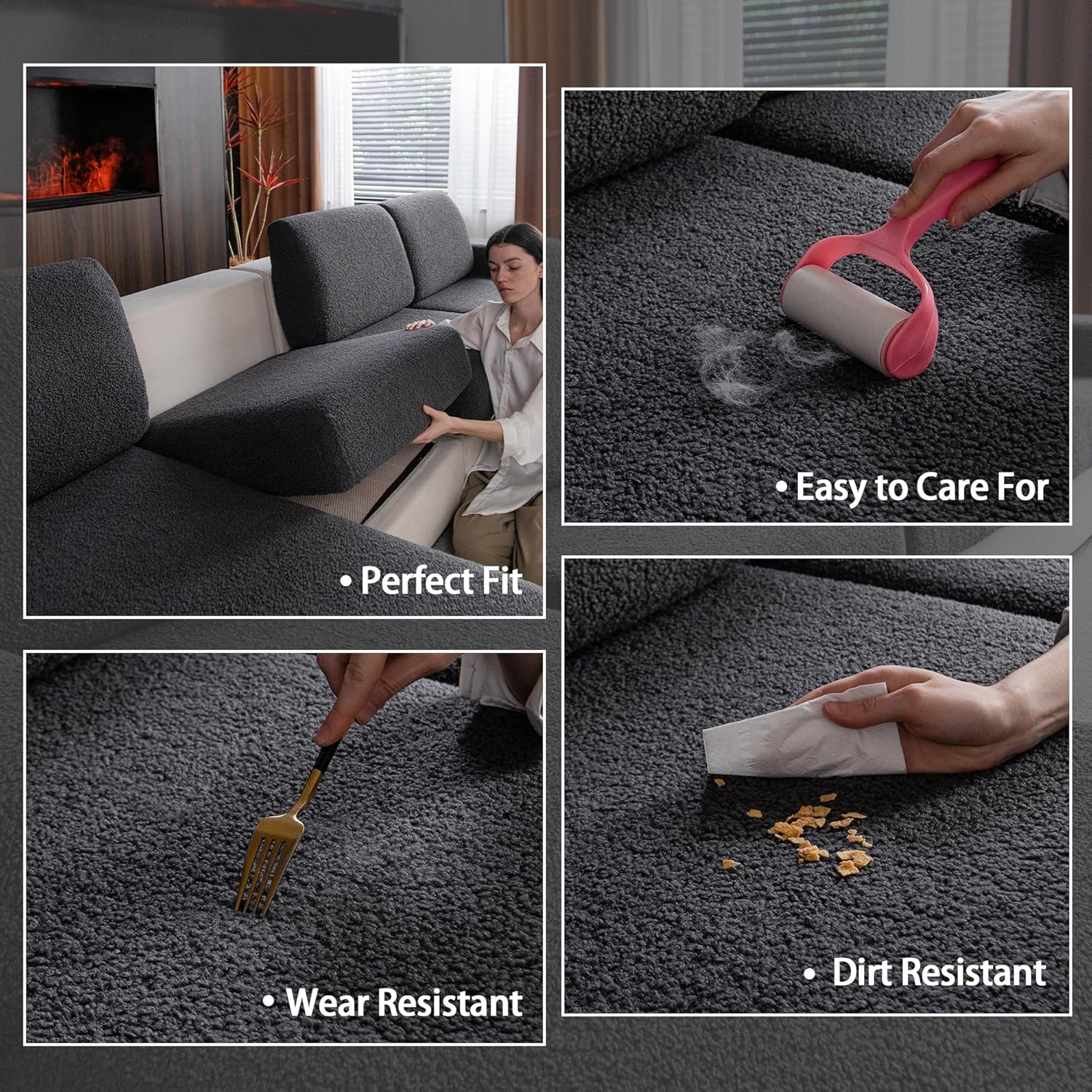 - 1.WHAT YOU WILL GET: 2*Seat Cushion Cover S + 1*Chaise Cushion Cover.Suitable for sofa seat cushions with Length: 23-35 inches, Width: 21-31 inches, Height: 4-9 inches, and chaise cushion with Length: 63-74 inches, Width: 31-44 inches, Height: 4-9 inches.This sectional couch cover is tailor-made for your sofa and can effectively resist stains, dust, pet hair and daily wear and tear.Made of soft Polar Fleece fabric, it adds a cozy and warm touch to your seat.