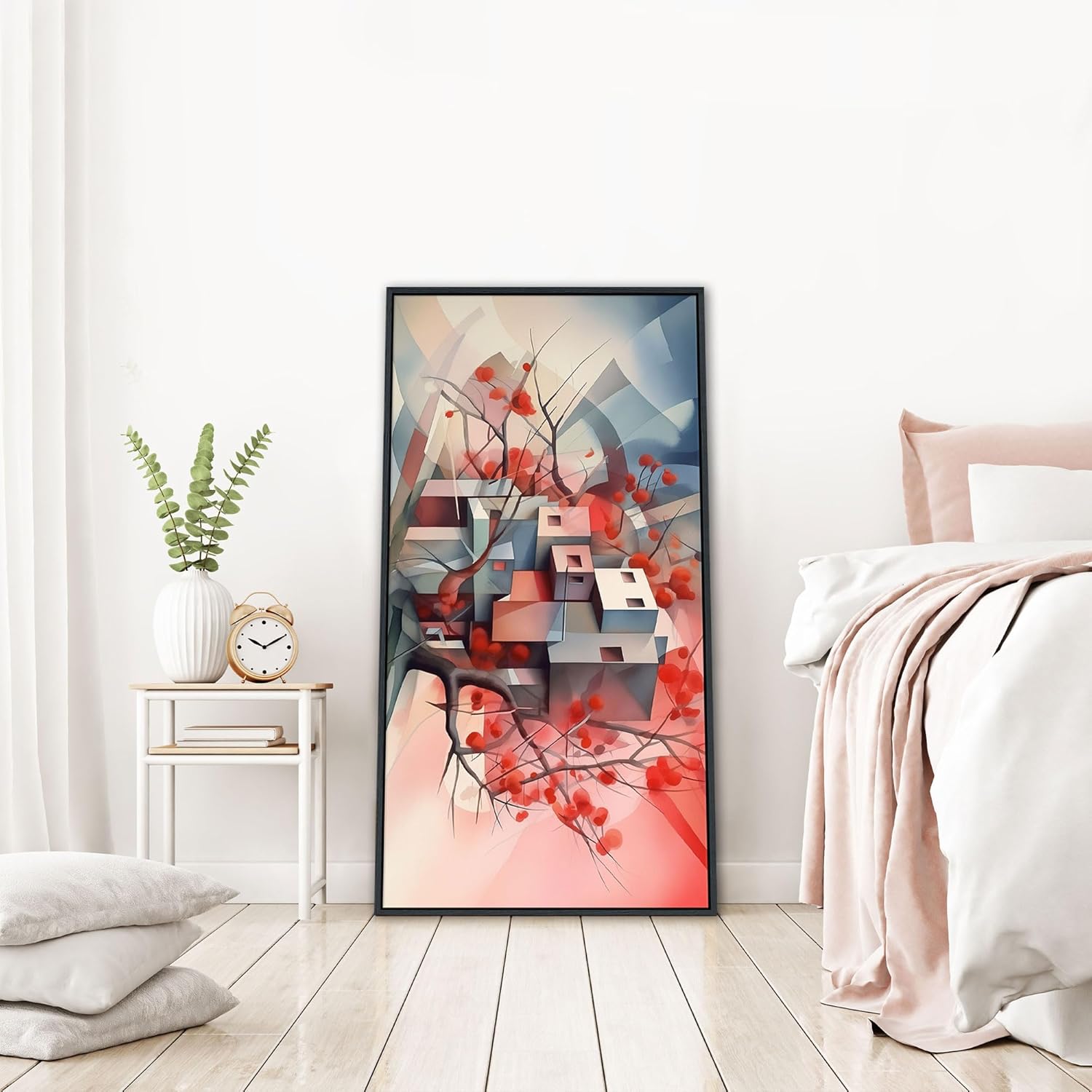 - Innovative Artistic Style: This canvas wall art blends geometric and natural motifs, merging abstract wall art with vibrant red blooms for striking contrast. Ideal as large wall art for living room or office wall art, its bold hues and modern design elevate paintings wall decor or modern wall art collections.