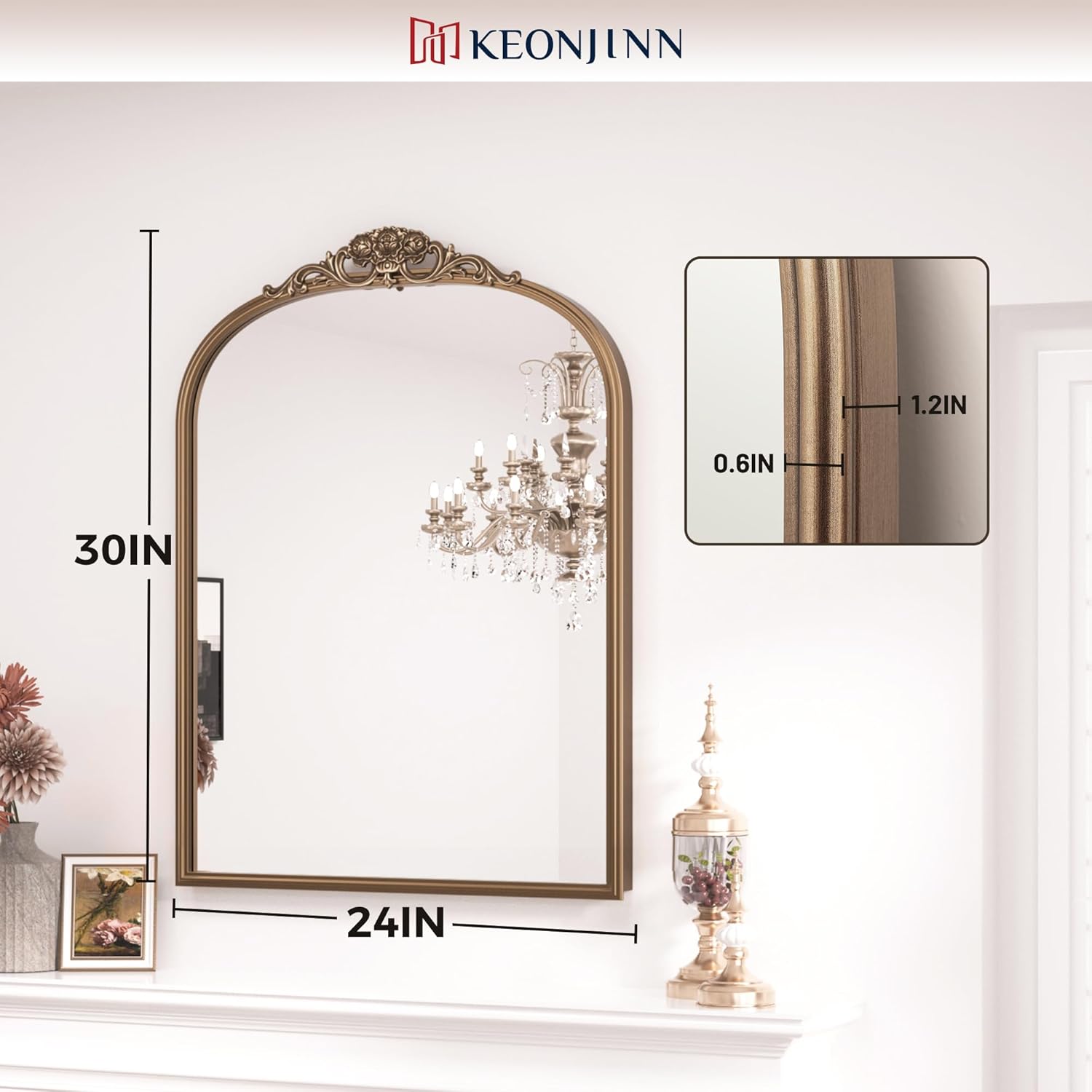 - 【Baroque-inspired Charm】 Keonjinn Antique Arched Mirror is a timeless piece designed to elevate your wall décor. Inspired by the opulence of the Baroque era, this mirror exudes historical charm with its graceful arched design and intricate wooden floral crown, creating a captivating focal point in any room.