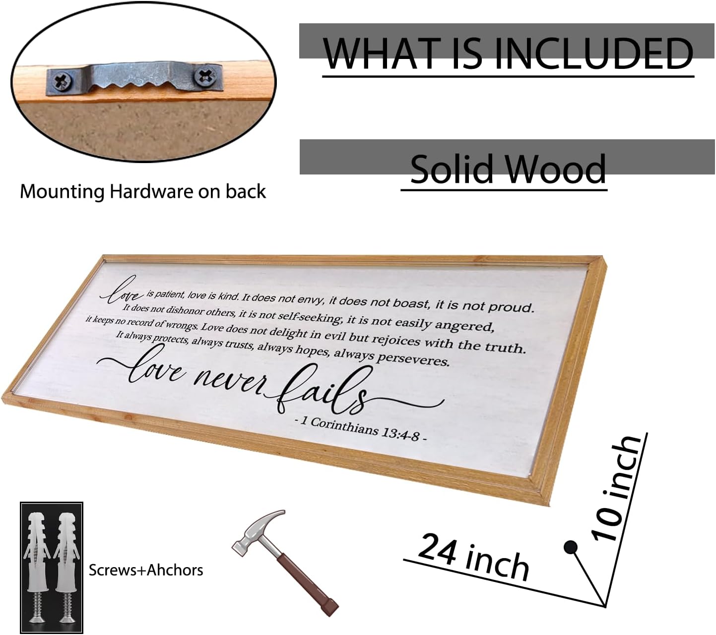 - PERFECT CRAFT: The home decoration sign frame is hand-dyed, and the middle part of the font is printed with UV ink. The sign measures 24 x 10 inches and is extremely lightweight at 1.55 pounds and can be hang easily.