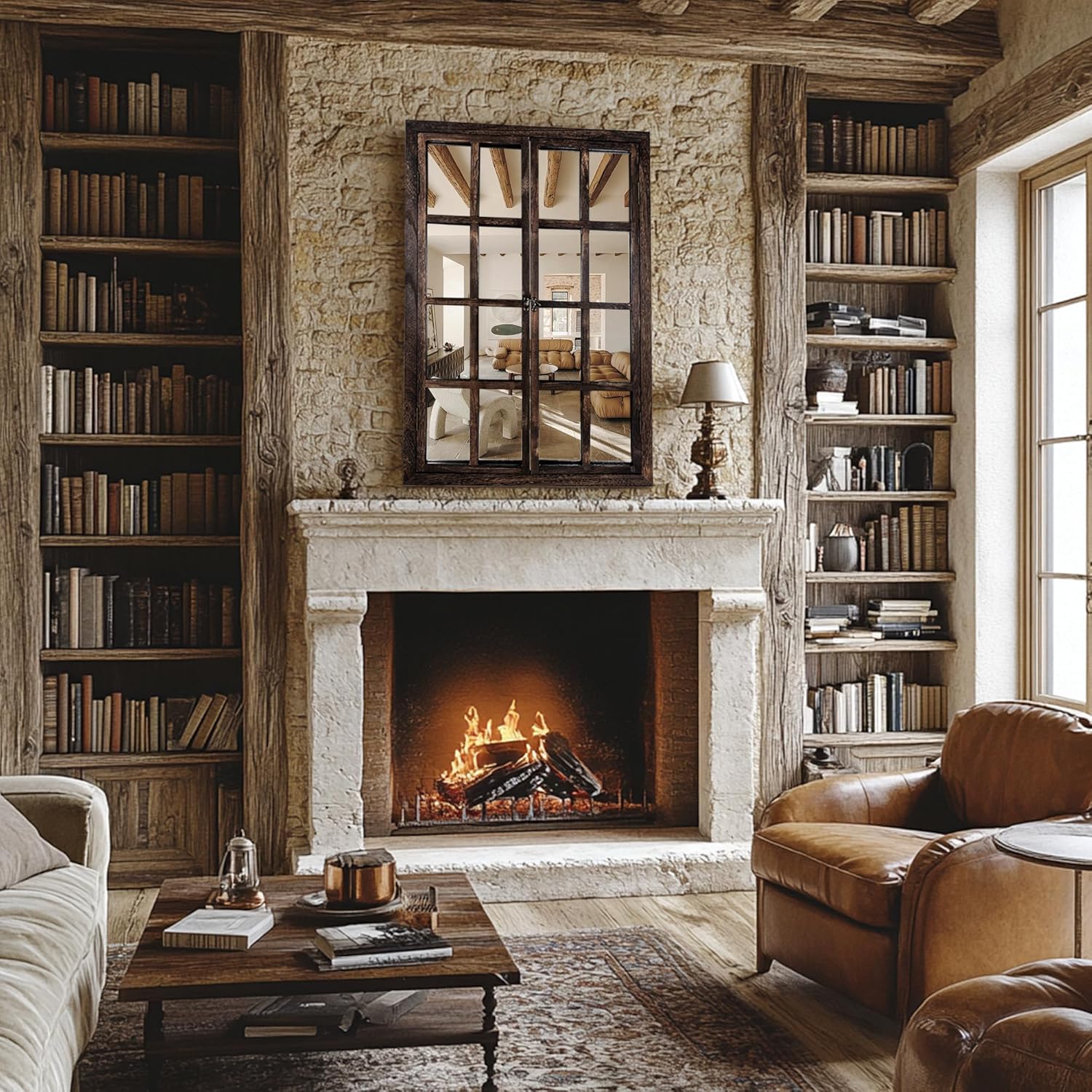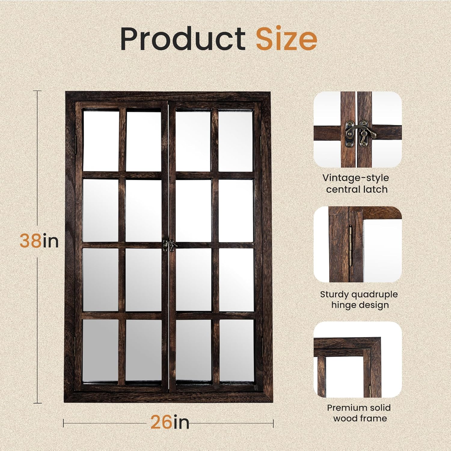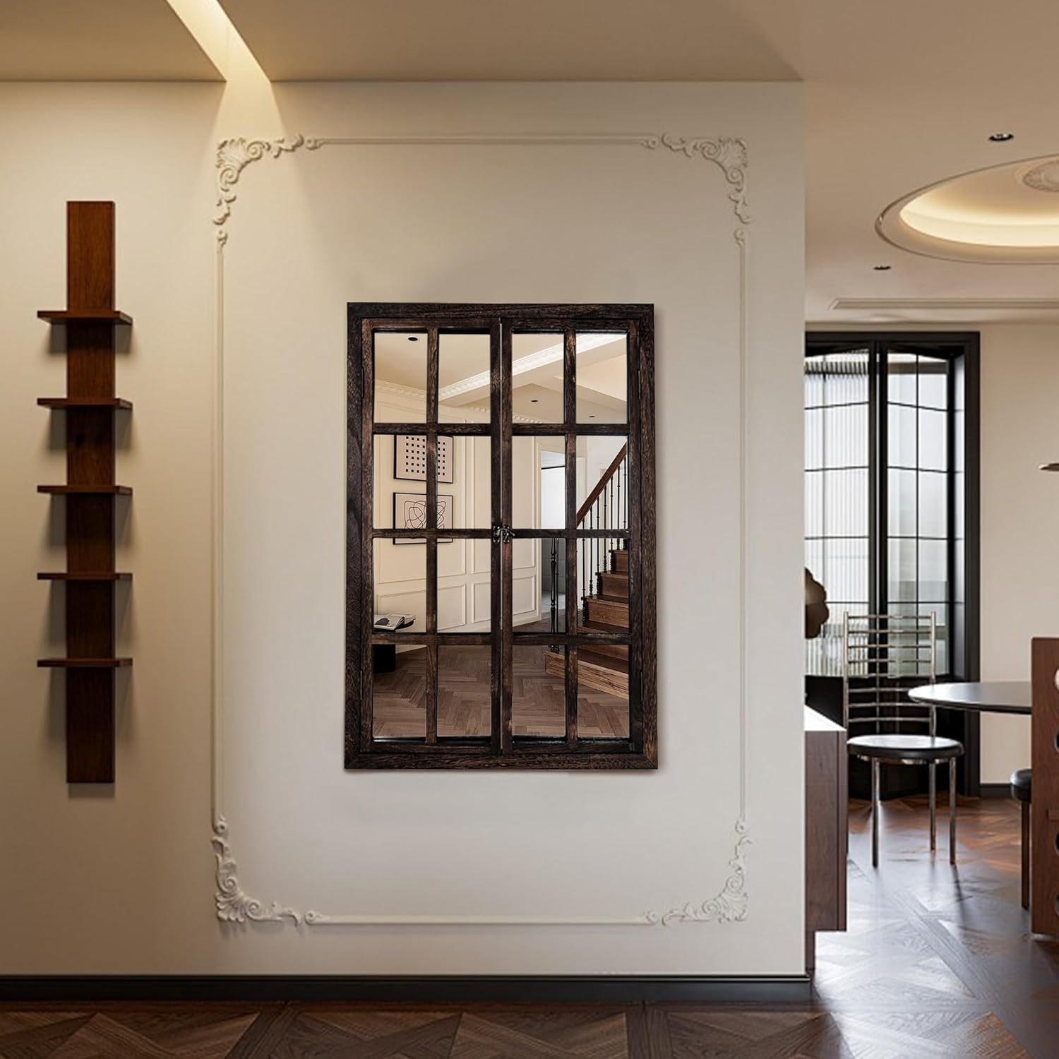 - 【Decorative Rectangular Frame】The elegant rectangular top and divided window-style panes create the illusion of a real window, making rooms feel brighter and more open. A timeless decor piece that blends functionality with artistry.