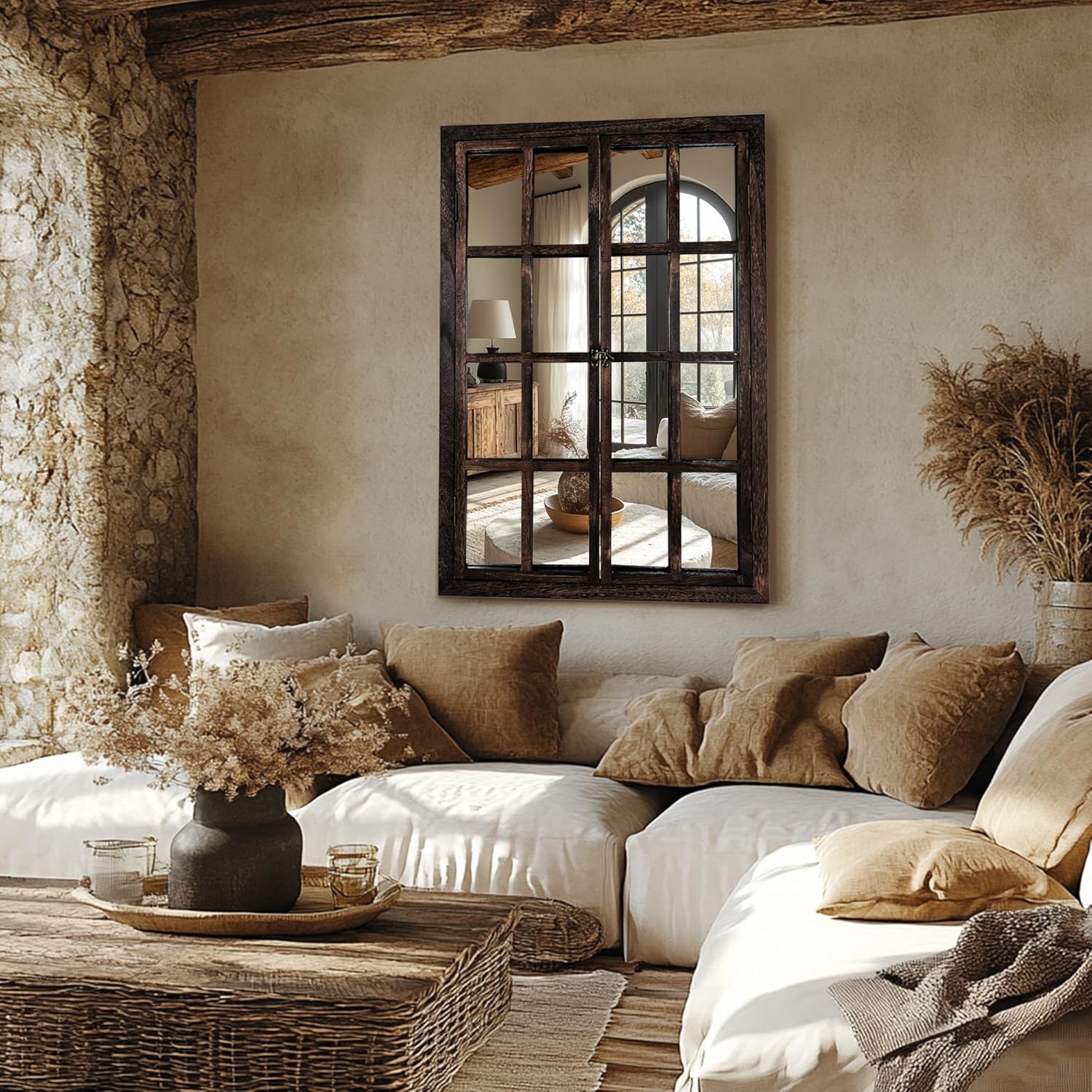 - 【Versatile Wall Decor Mirror】Ideal as a wall mirror in your living room, hallway, entryway, or bedroom. It pairs effortlessly with rustic, industrial, farmhouse, or boho interiors—instantly elevating your home’s look.
