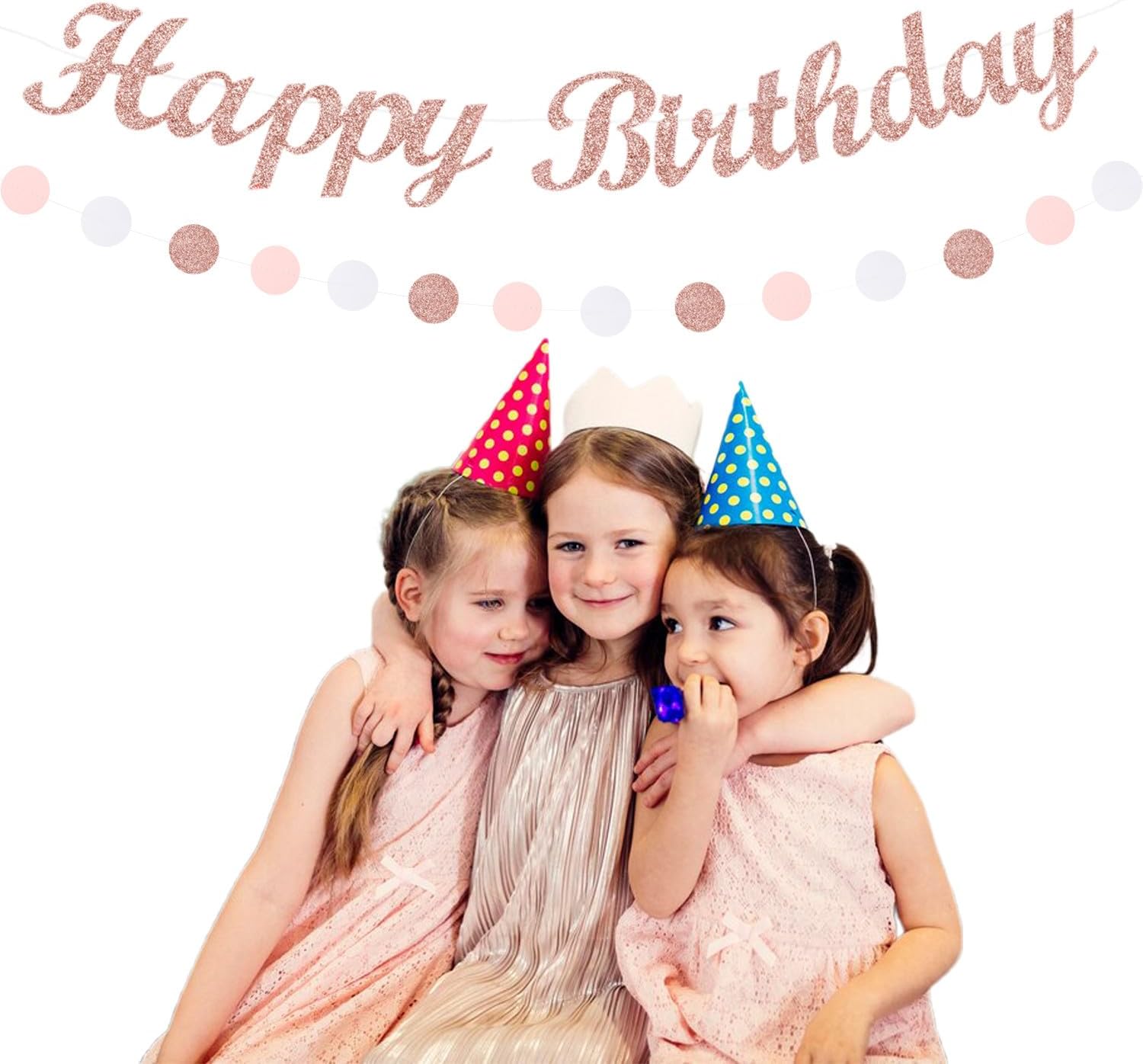 - 【Light pink rose gold birthday decorations kit includes】The party decorations kits include 8pcs light pink rose gold paper flower, 2pcs white paper fans,2pcs 8" white paper honeycomb, happy birthday garland and light pink rose gold streamers.