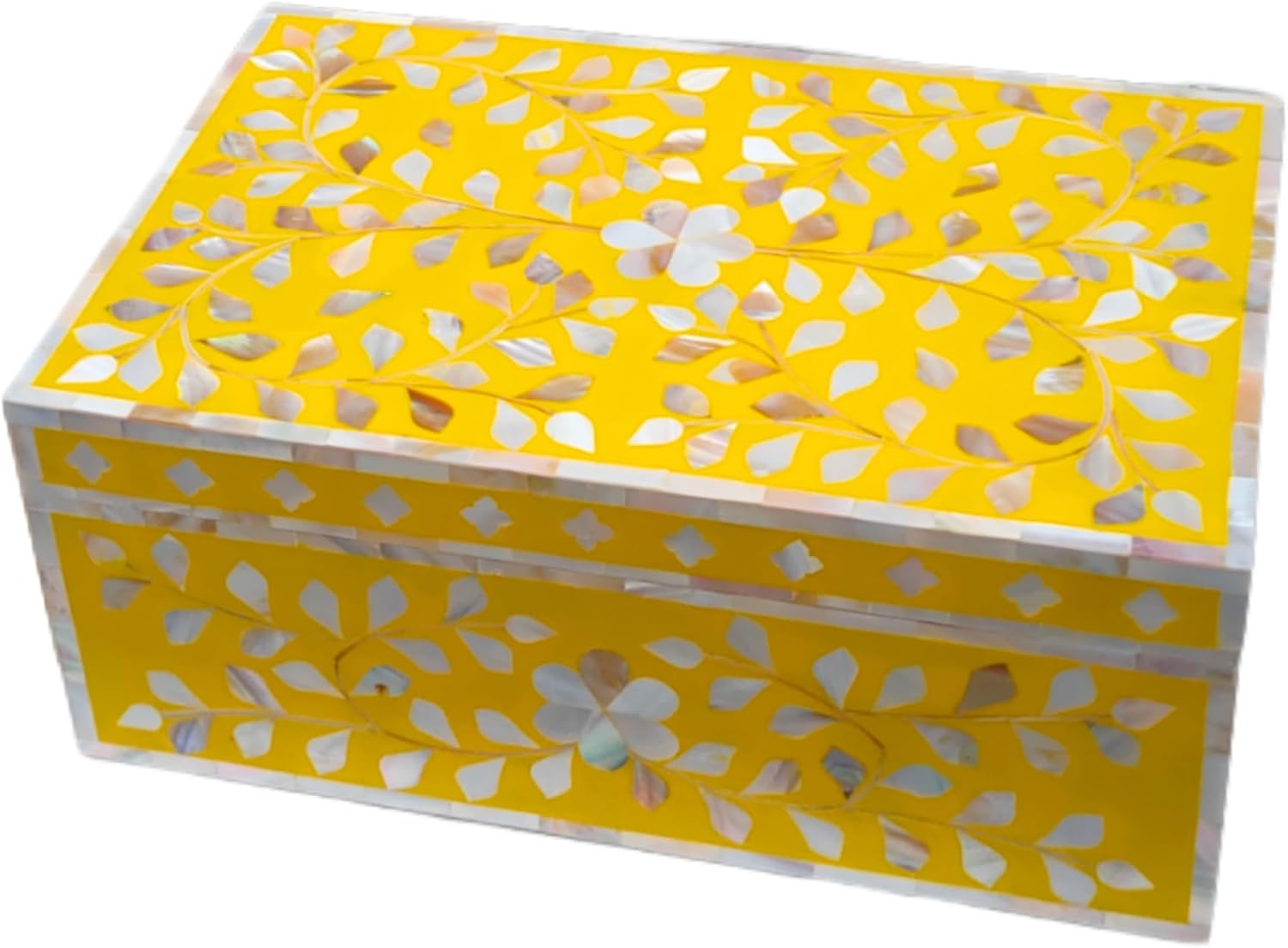 Decorative Storage Box Of Mother Of Pearl Inlay Floral Design Wooden Storage Box For Home Decoration For Living Dining & Bedroom (Yellow_12x8x5 inch)