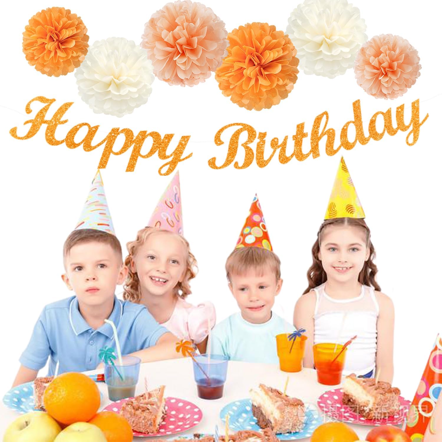 - 【Orange birthday decorations kit includes】The party decorations kits include 8pcs orange white peach paper flower, 2pcs orange paper fans,2pcs 8" white paper honeycomb, happy birthday garland and orange streamers.