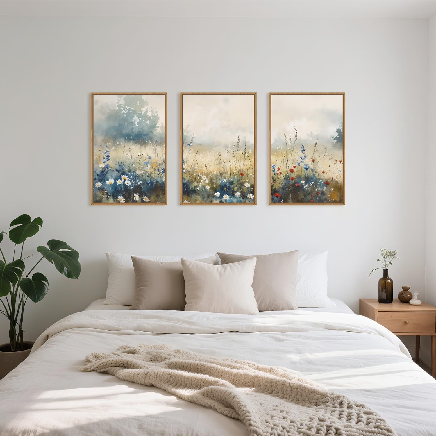 Celestdeco Nature Wildflower Framed Canvas Wall Art Set, Pastoral Landscape Wall Decor, Colorful Meadow Wall Painting, Rustic Floral Art Print for Living Room, Bedroom, Office - 24"X36"X3