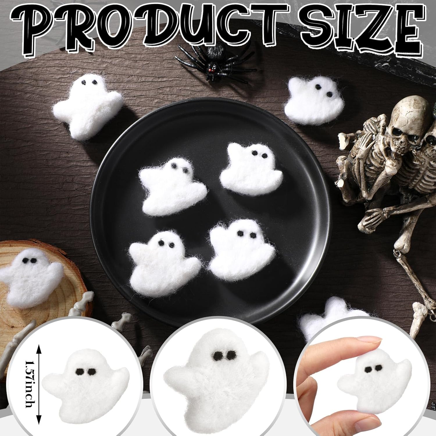 - Captivating Design: our ghost decorations measure approximately 1.57 inches in length and 0.39 inches in thickness; This convenient size makes these Halloween party wool ghosts versatile for various decorative needs, whether hanging or adhered, ensuring they draw attention and delight guests