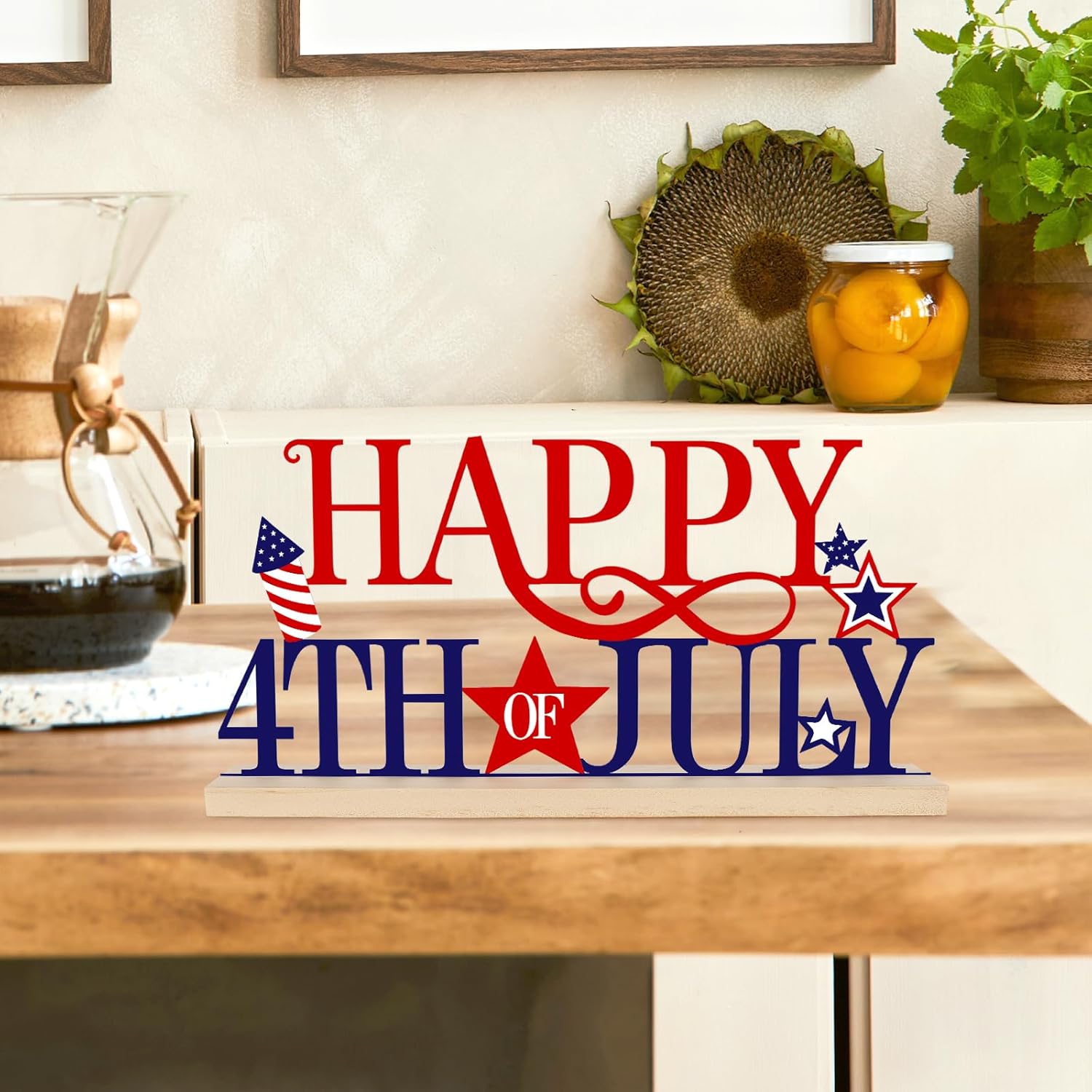 - Great Holiday Gift - The chic and cute appearance makes this table sign a great gift choice for your family, friends, relatives, and others. This chic Happy 4th of July Table decoration can be used in the home, living room, bedroom, kitchen, fireplace, tabletop, office, cafe, business center, and hotel.