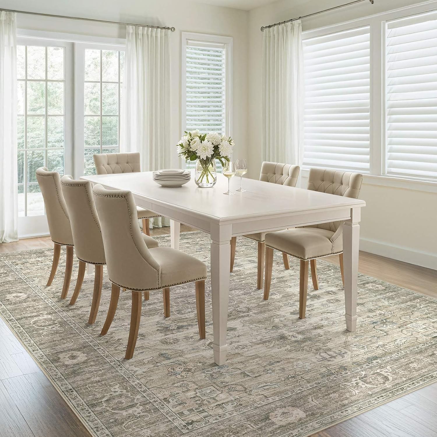 Washable Area Rugs for Living Room - 5x7 Neutral Vintage Distressed Floral Farmhouse Boho Large Soft Floor Rug Indoor Non Slip Carpet for Living Room Bedroom Dining Room Office - Brown/Tan