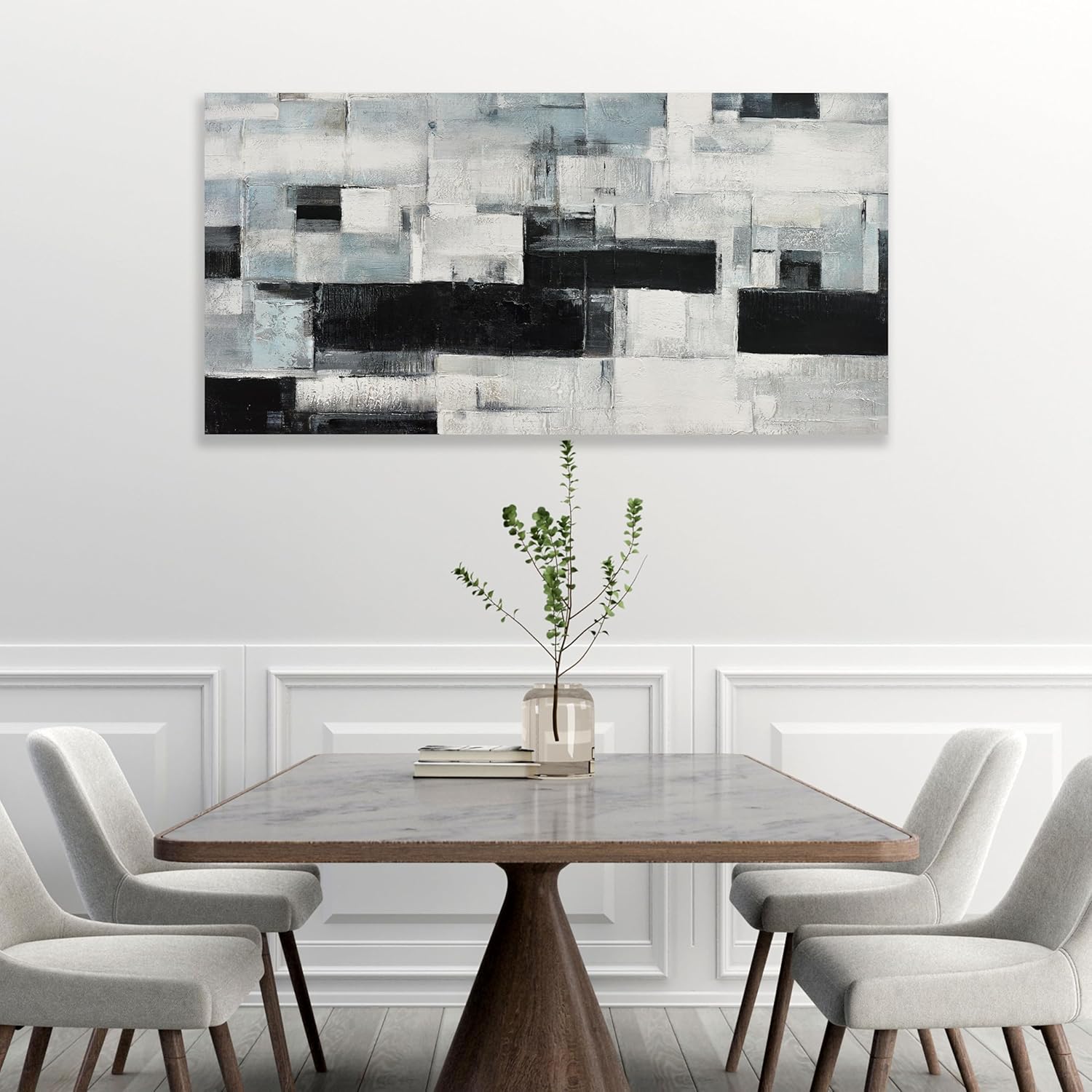 Glvzygy Abstract Wall Art Room Decor Black White and Gray Plaid Minimalism Picture Abstract Art Wall Decor Modern Abstract Wall Art Canvas for Living Room Bedroom Office 20"x40"