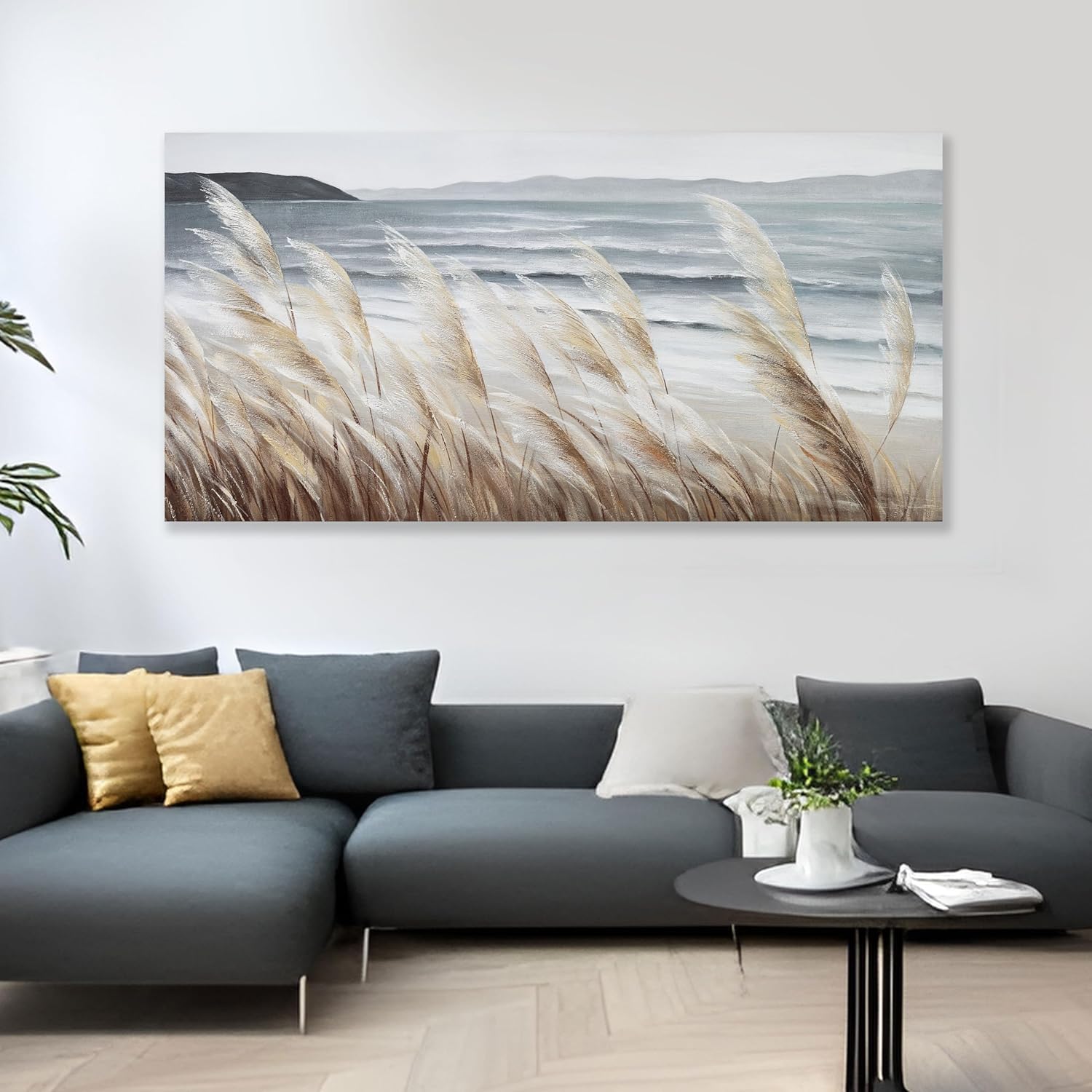 Plant Wall Art Nature Wall Art Reed Seascape Canvas Painting Wall Decor Framed Artwork for Bedroom Living Room Decoration Home Kitchen Office 29"x58"