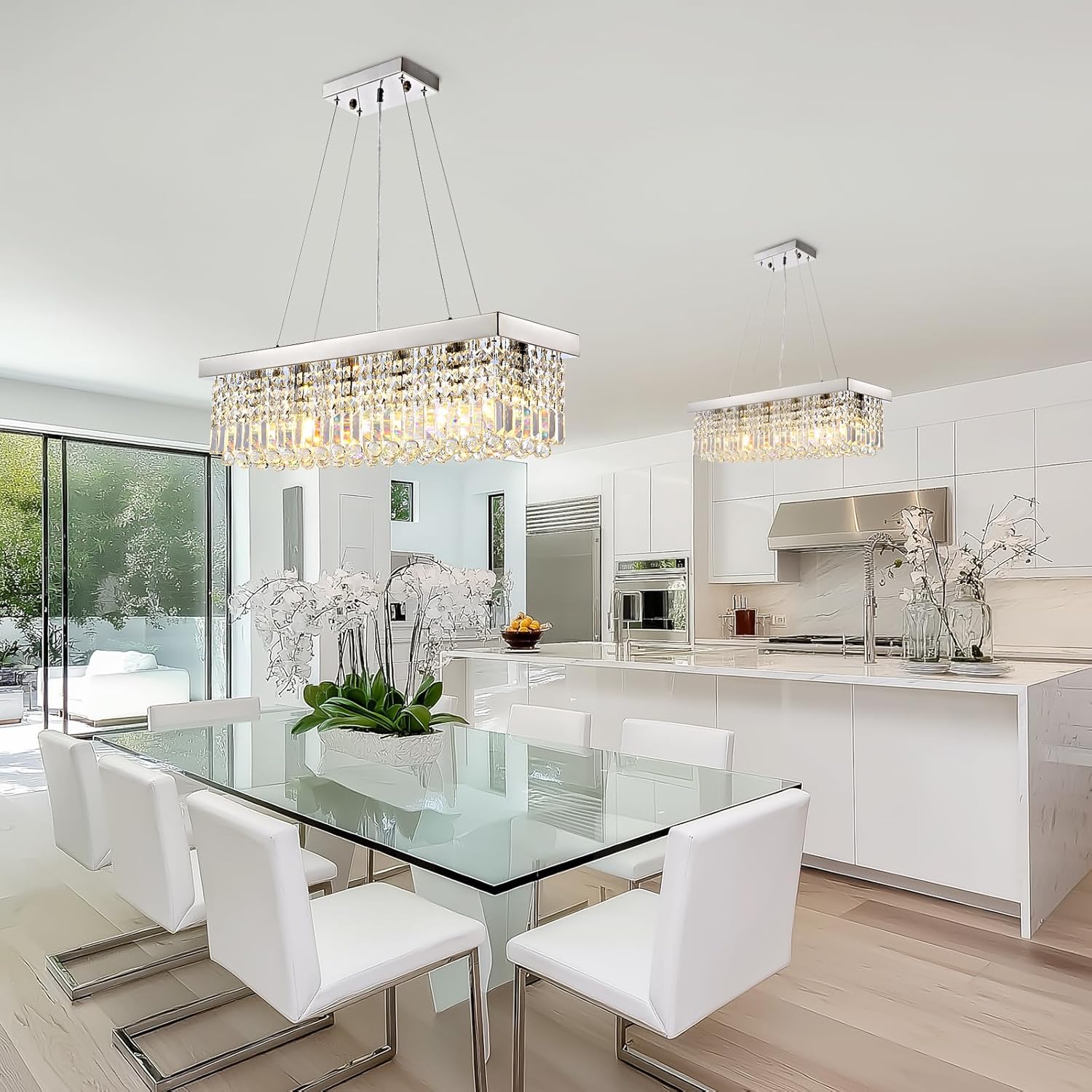 - EASY INSTALLATION: This rectangle modern chandelier comes with all necessary mounting hardware and a detailed instruction manual for quick, hassle-free setup. The user-friendly design and secure packaging ensure that each crystal arrives intact โ your new chandelier will be ready to shine in your foyer, dining area, or kitchen with minimal effort.