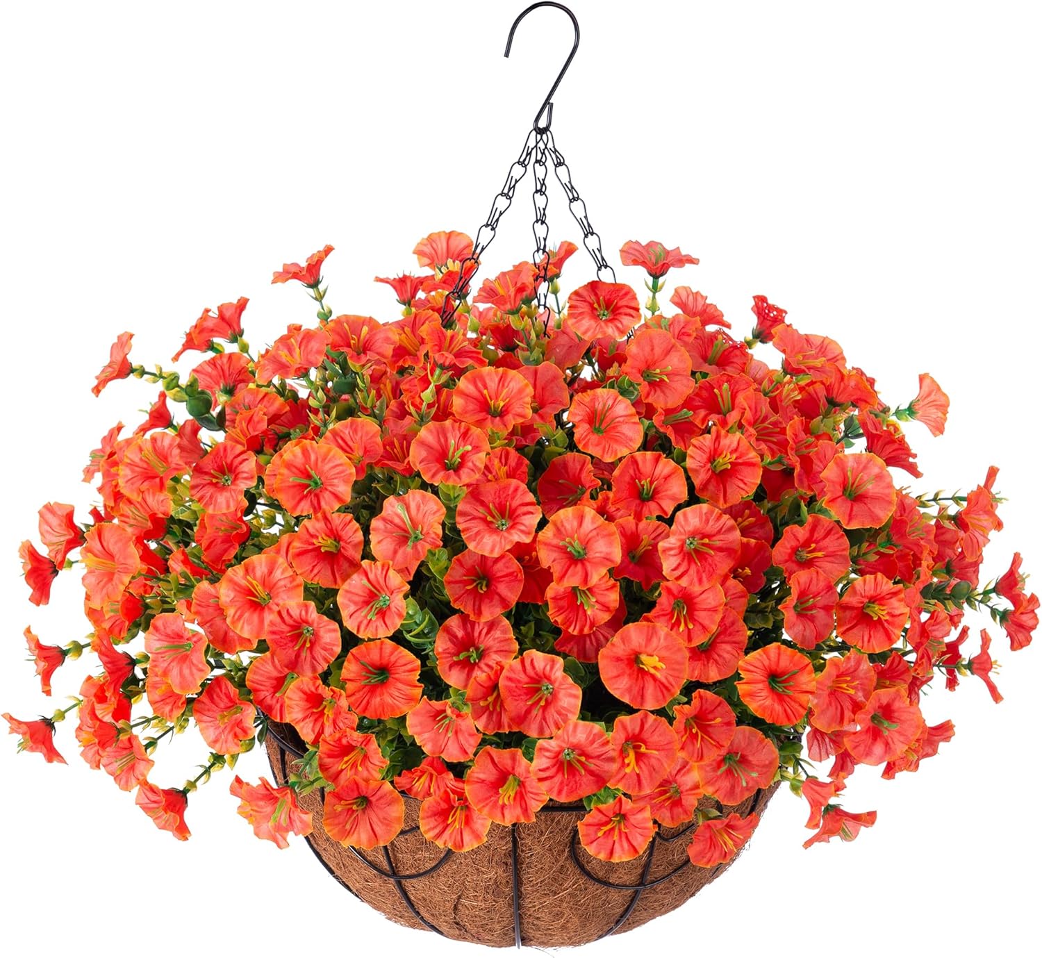 - Fall Flowers Artificial for Decoration: These artificial flowers for outdoors hanging basket are perfect for garden, porch, patio, balcony, yard, home, front door, and outside decoration. These hanging baskets with artificial flowers provide the beauty of real flowers without the need for maintenance.