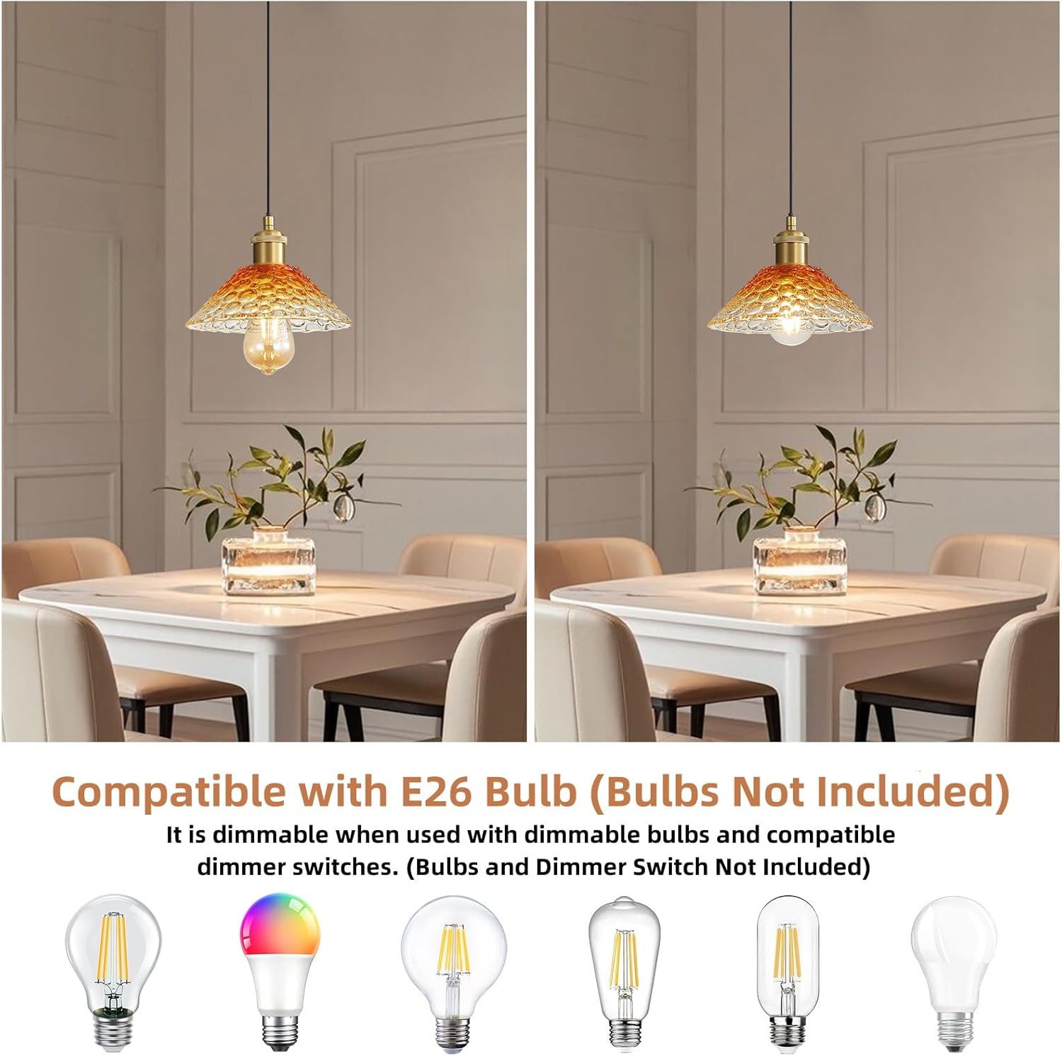 - Light source: You need to equip yourself with 3 Edison bulbs, our chandelier does not include bulbs. When used with a dimmable bulb and a compatible dimmer switch, the chandelier is dimmable, allowing you to create different lighting atmospheres according to your preferences.