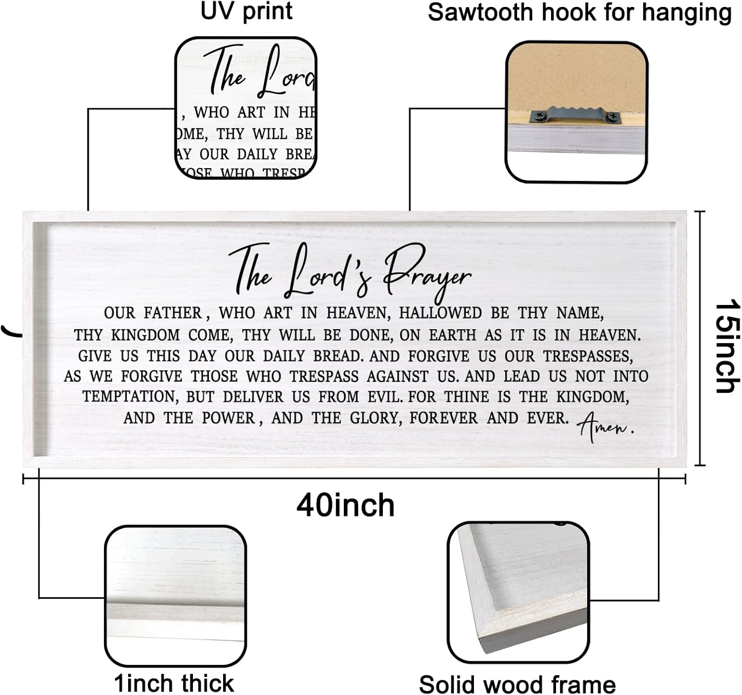 Our Father Prayer Bible Verse Framed Wall Art, 40''×15'' Rustic Religious Christian Lords Prayer Sign for God Jesus Christ Prayer, Horizontal Holy Inspirational Catholic Scripture Decor