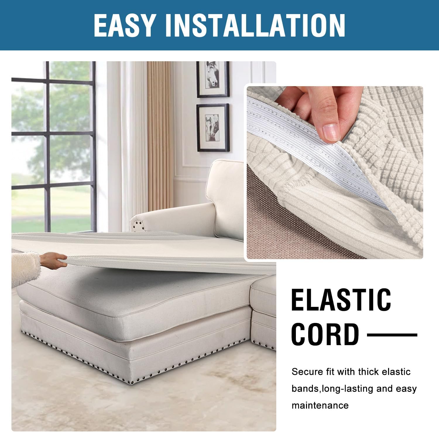H.VERSAILTEX Super Stretch Individual Chaise Cover Sectional Couch Covers for L Shaped Sofa Both Left/Right Featuring Thick Jacquard Textured Twill Fabric (1 Piece Chaise Cover, Porcelain)