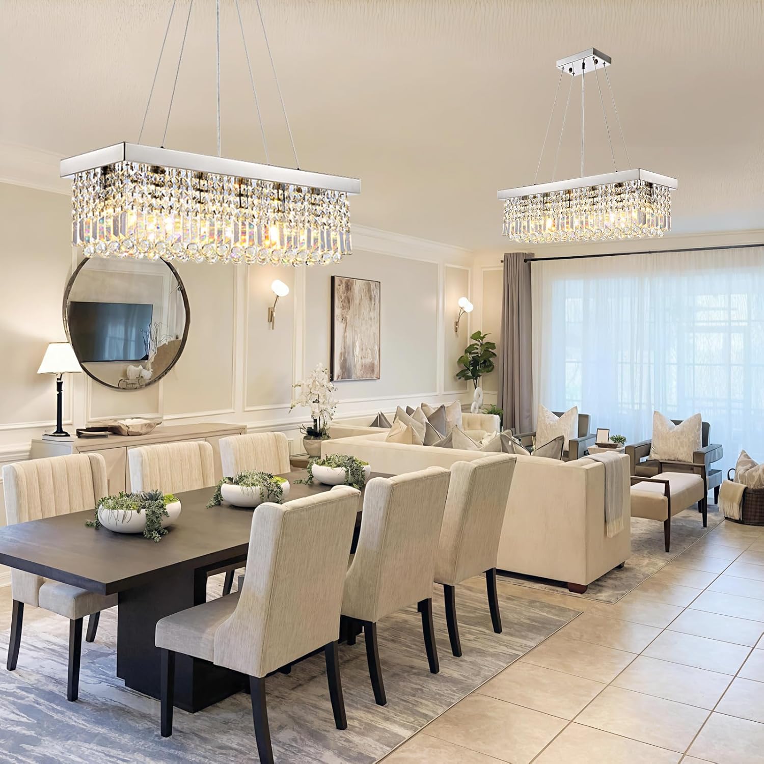 - EASY INSTALLATION: This rectangle modern chandelier comes with all necessary mounting hardware and a detailed instruction manual for quick, hassle-free setup. The user-friendly design and secure packaging ensure that each crystal arrives intact โ your new chandelier will be ready to shine in your foyer, dining area, or kitchen with minimal effort.