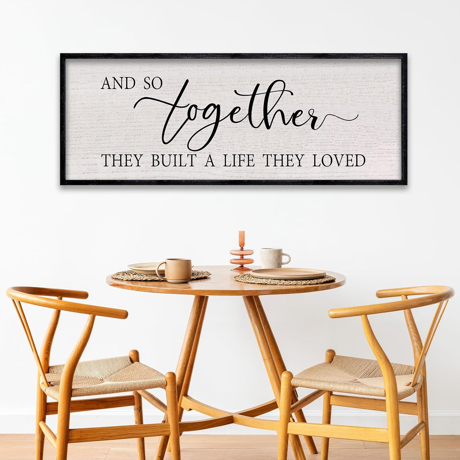 LuZhiQiang And So Together They Built A Life They Loved Sign Wall Decor 40"x15" Large Wood Framed Above Over Bed For Master Bedroom Hanging Wall Art (Black)