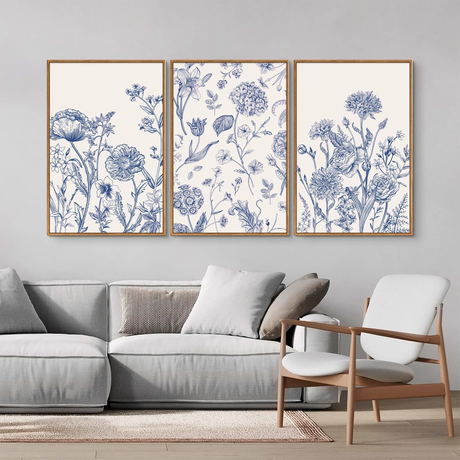 - Elegant Chinoiserie Design: Transform your space with this exquisite set of 3 framed canvases featuring classic chinoiserie floral patterns, adding a touch of sophistication to any decor