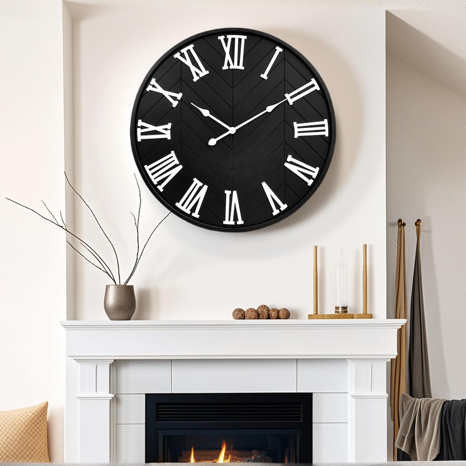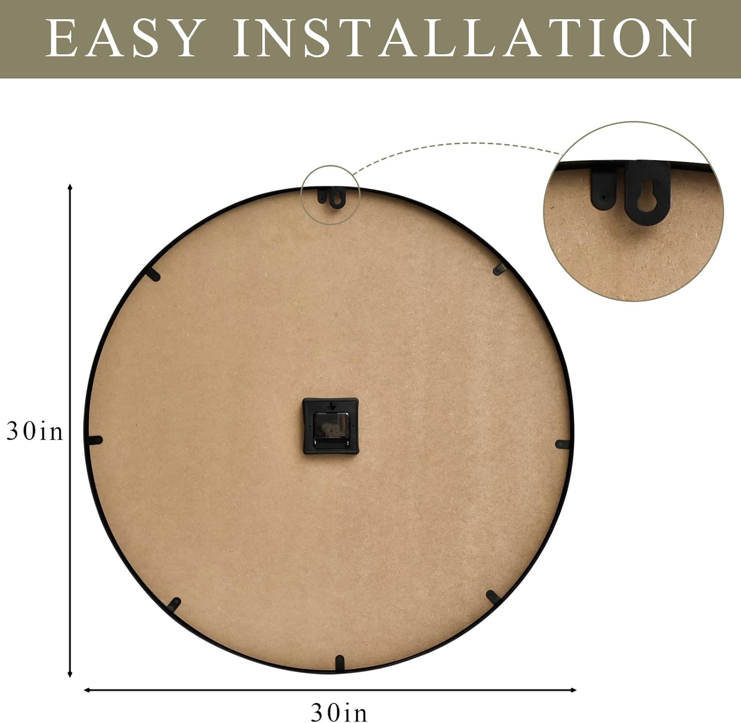 - MASSIVE 30-INCH PRESENCE & CLEAR VISIBILITY: Command attention! This oversized 30-inch diameter clock acts as a stunning centerpiece. Large, engraved numerals guarantee effortless time-reading from anywhere in the room.