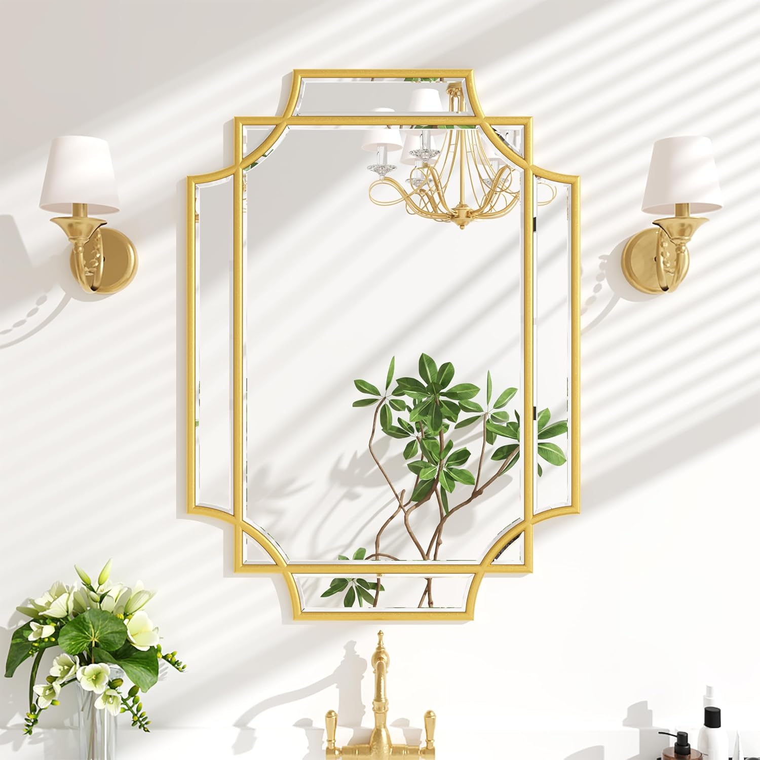 Bathroom Mirror for Wall Gold Farmhouse Wall Vanity Mirror for Over Sink Wood Framed Beveled Mirrors Deco(20 * 28IN/Gold)