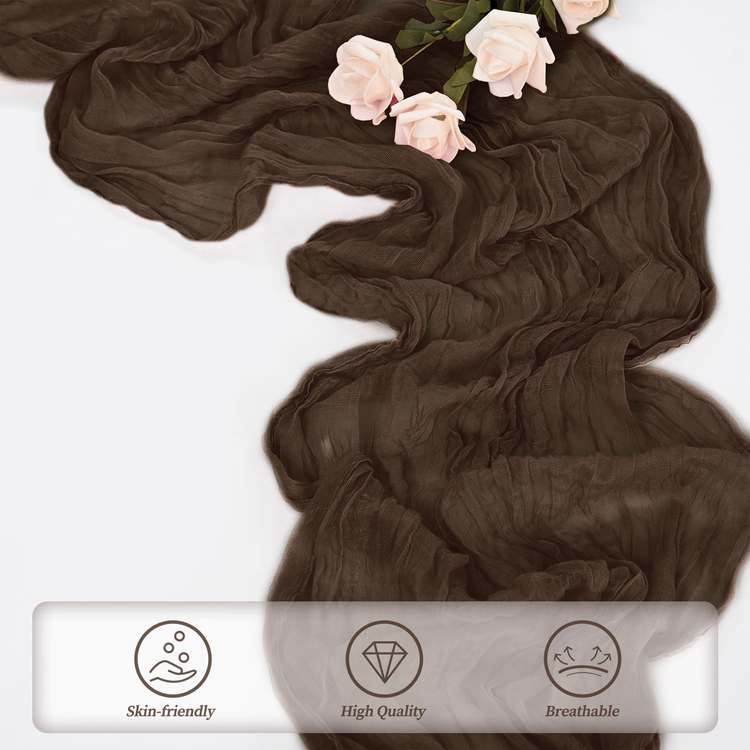 - Soft Table Runner Materials: This cheesecloth table runner is made of high-quality gauze, with a very soft touch and long-lasting durability. The exquisite edge stitching makes it look even more beautiful. It hangs naturally, and the pure plant dye does not fade, has no odor, and can be reused. It is romantic for every occasion of your life.