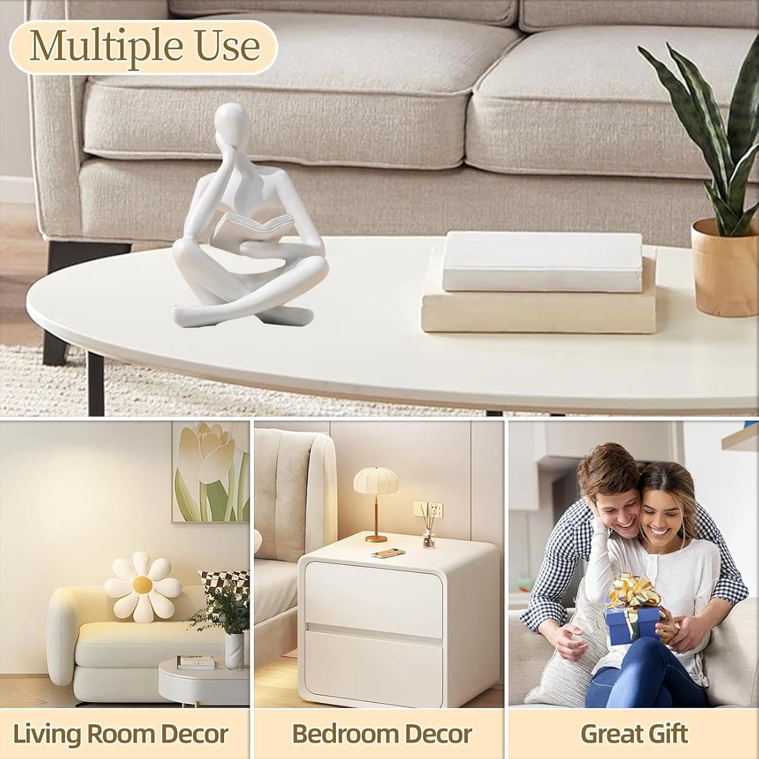 Bookshelf Decor Thinker Statue - Abstract Style Thinker Sculptures Modern Aesthetic Figurine Decoration Statues for Home Decor-Zuo Si-White