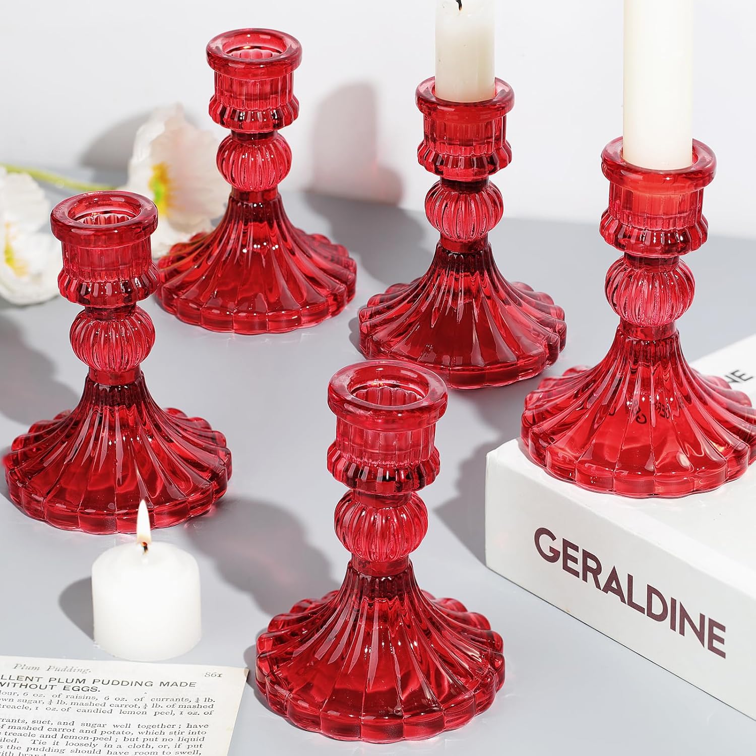 12PCS Red Candlestick Holders Set- 4" H Taper Candle Holders, Glass Candle Holders Bulk for Activities, Party, Home Table Centerpieces, Festival Gifts & Windowsill Decor