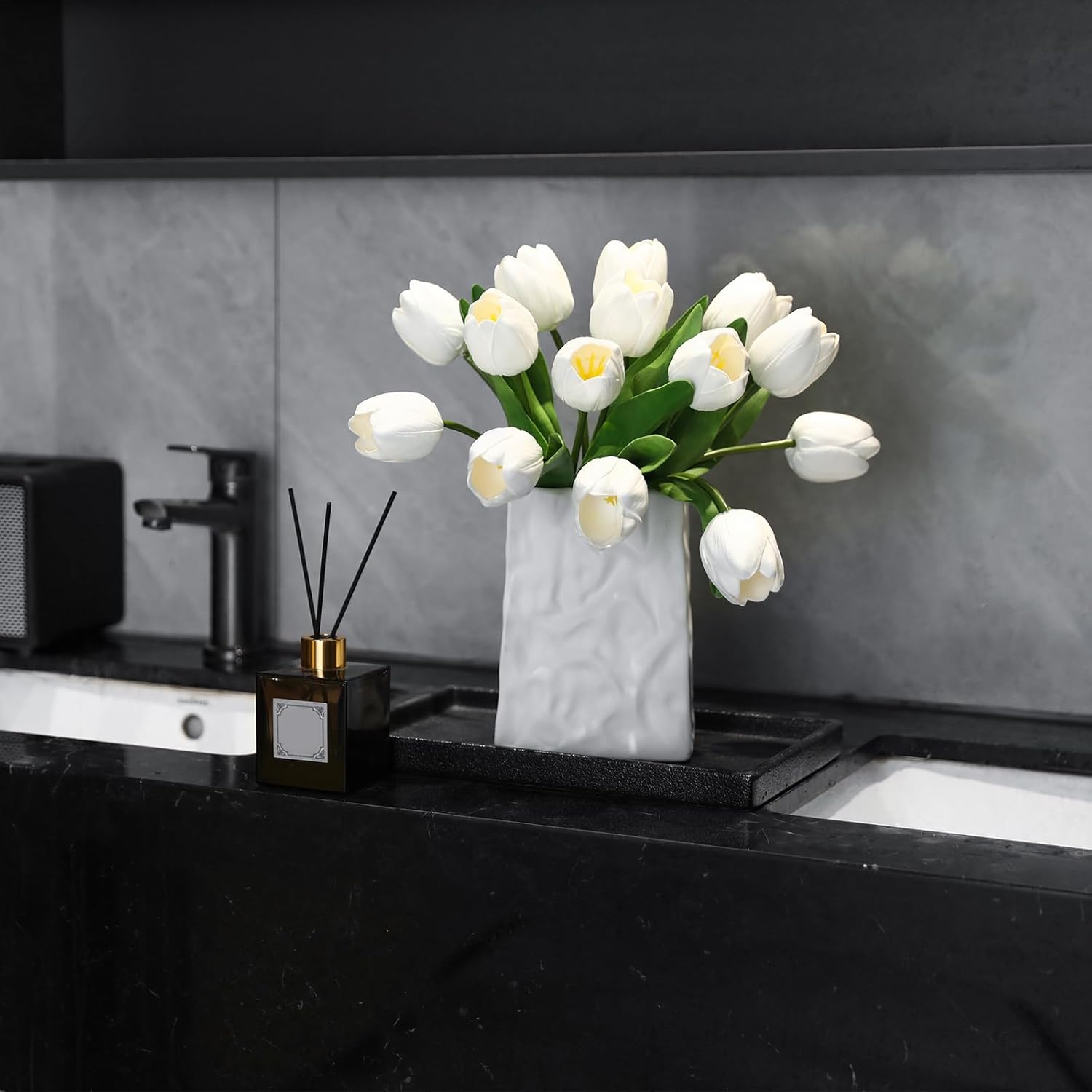 - Wide application: These artificial tulips are ideal for home and office decoration. You can use them in the kitchen, shelves, tables or anywhere else. They can also be used as decorations or centerpieces for weddings and parties, or as holiday gifts for friends and relatives on Valentine's Day, Easter, Mother's Day, Christmas, New Year.