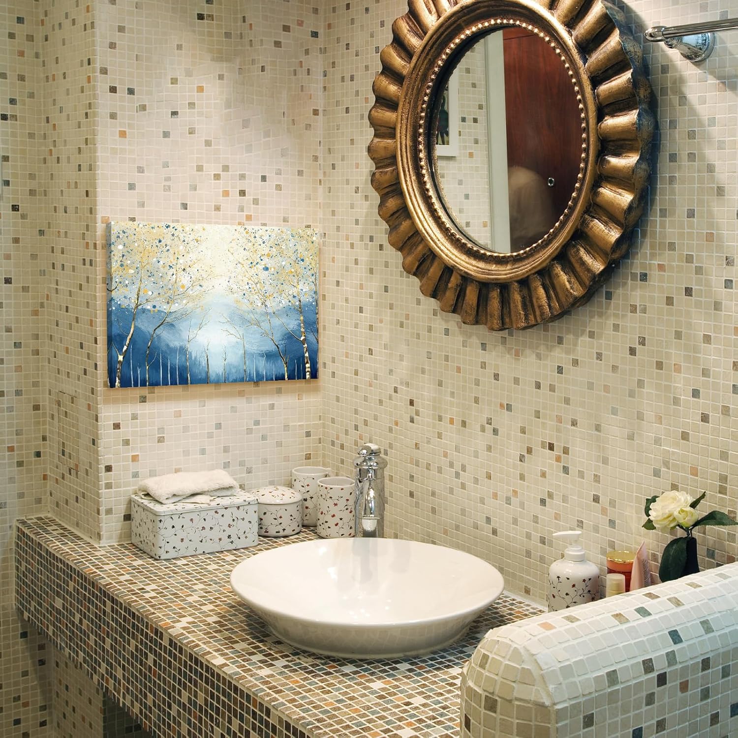 amatop Abstract Tree of Life Wall Art– Modern Blue Yellow Picture Forest Birch Mountain Canvas Print Minimalist Landscape Small Nature Artwork for Bathroom Bedroom Office Decor,16x12 Inch