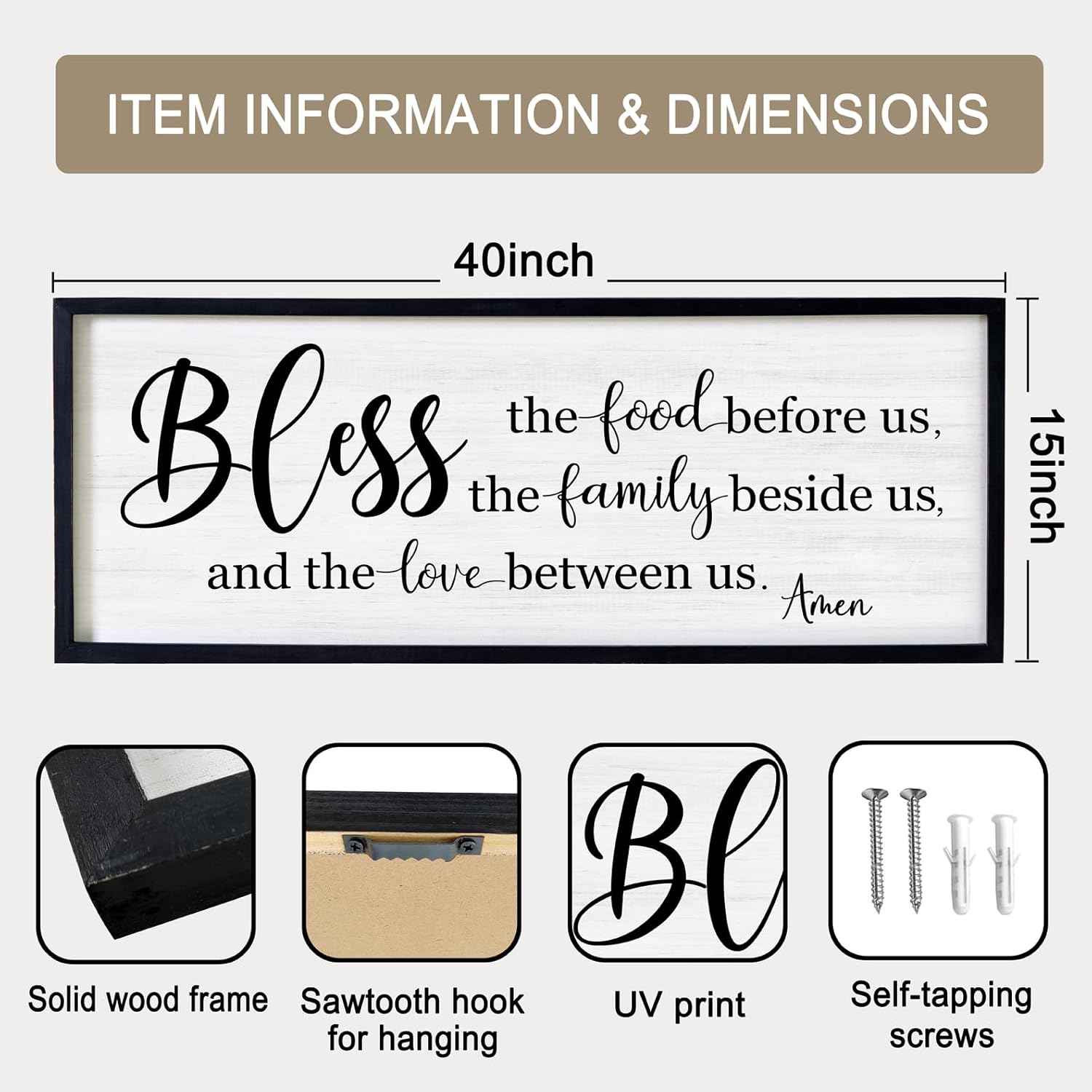 Bless the Food Before Us, the Family Beside Us, and the Love between us Framed Wall Art for Dining Room, 40''×15'' Holy Positive Religious Rustic Bible Verse for Christian God Jesus Christ Prayer