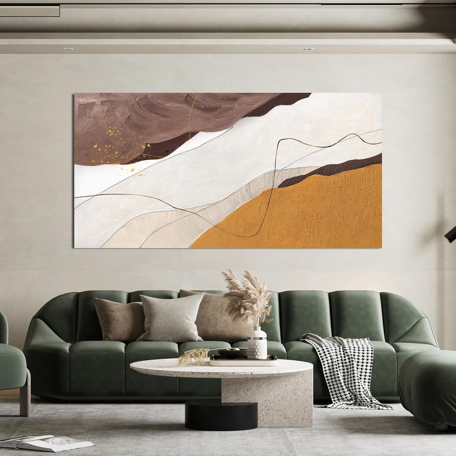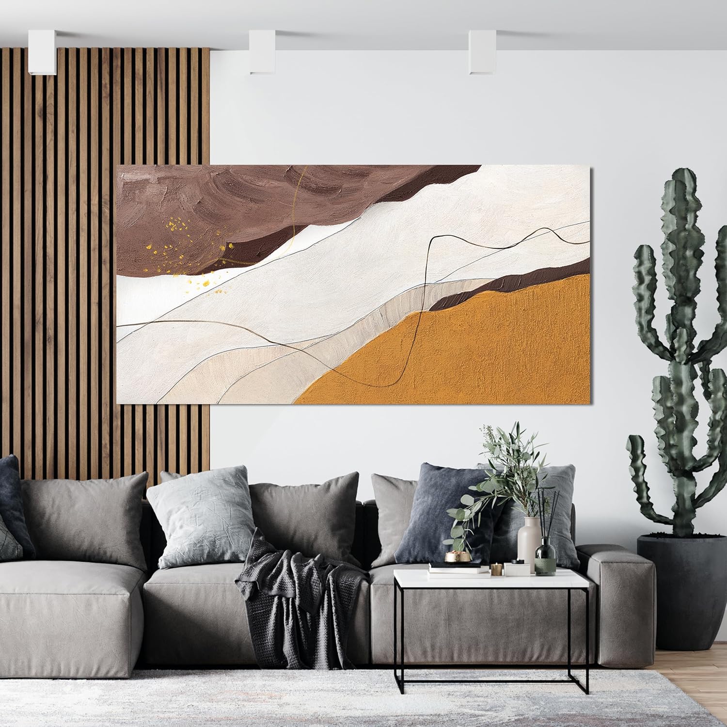 Canvas Abstract Wall Art Decor Minimalist White Wall Art Prints Abstract Canvas Art Wall Decor Large Modern Brown Wall Art Decorations Oversized Artwork for Walls Bedroom Office Wall Art Decor 29" X 58"