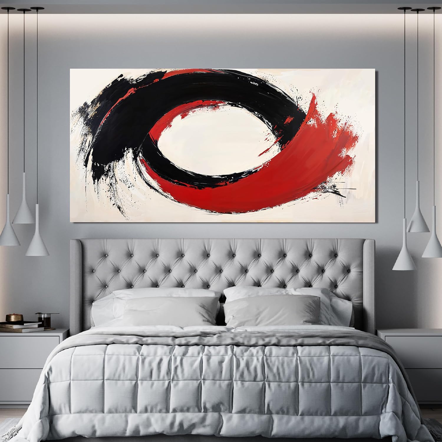 Abstract Wall Art Decor Minimalist Black Wall Art Prints Abstract Canvas Art Wall Decor Large Modern Wall Art Red Wall Art Pictures for Living Room Artwork for Walls Bedroom Office Decor 24" X 48"
