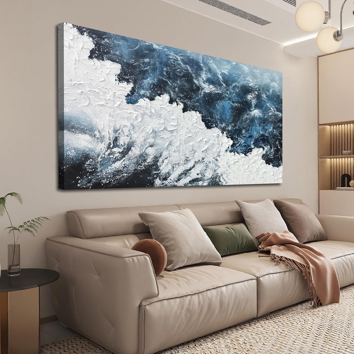 Canvas Wall Art Decor Abstract Canvas Wall Pictures for Living Room Large Blue White Wall Art Prints Beach Wave Artwork for Walls Coastal Modern Wall Art Decorations Home Office Wall Art Decor 20" X 40"