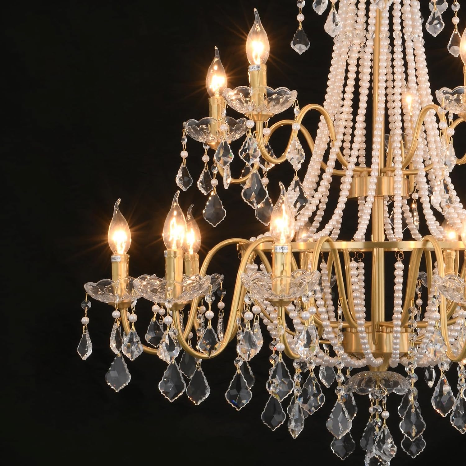 - 【15 E12 Light Sockets】Double-tier layout is equipped with 15 E12 standard lamps (bulbs included), supporting multiple combinations of warm/white light sources, easy to light up your living room or dining room.
