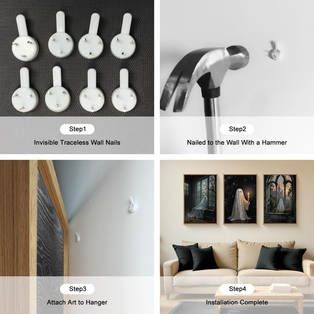 - 【Halloween Cute Ghost Wall Art】This set of three framed paintings features a charming and whimsical take on Halloween ghosts. The soft, spectral imagery creates a spooky yet cozy atmosphere, perfect for decorating during the Halloween season or for adding a touch of mysterious charm to your home year - round. It can be a great conversation starter and a unique addition to your holiday decor collection.