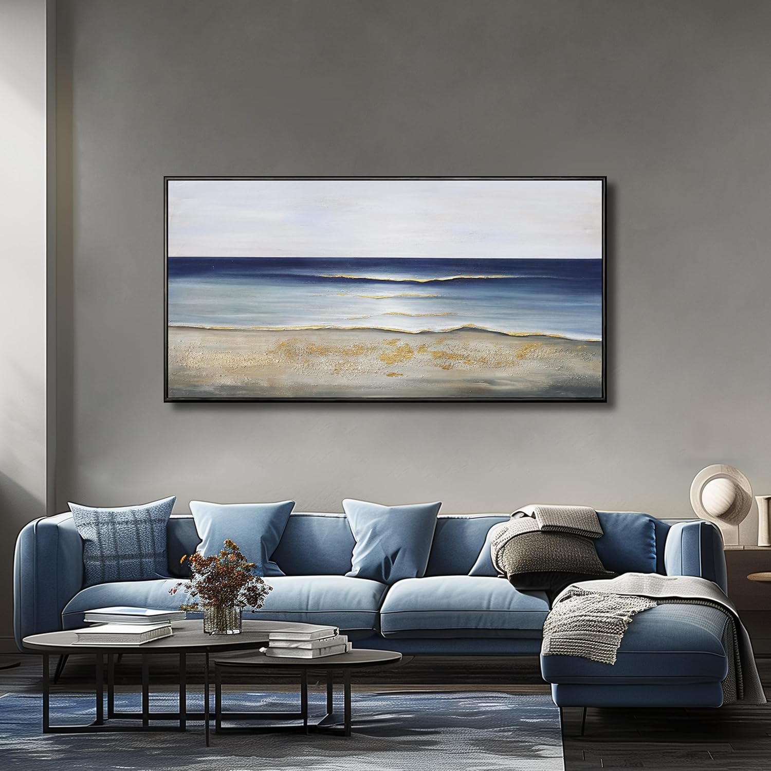 Yuaxker Ocean Wall Art Blue Wall Decor Trendy Framed Canvas Painting Modern Unique Artwork for Living Room Bedroom Dining Room Office Home Decor 20x40 Inch