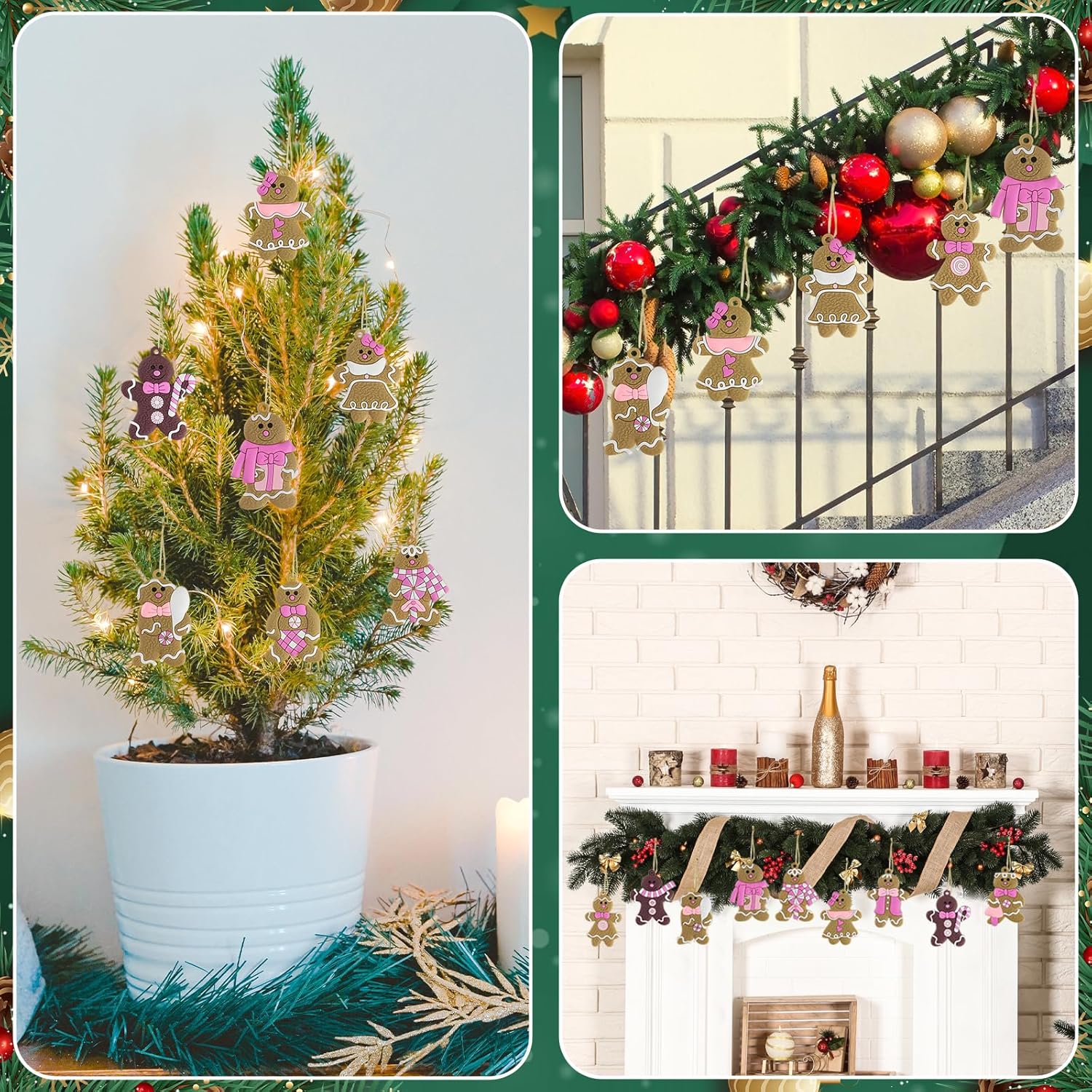 - CHRISTMAS TREE ORNAMENTS: These gingerbread man ornaments have very adorable looking, so why not try a traditional decoration this year by putting these little cute gingerbread ornaments on your small Christmas tree, maybe a candy themed tree, or ginger bread wreath&garland; or use as a gift or as gift tags or giving away to friends, co-works, teachers, students, carolers, etc; or put in the treat bags for kids; or simply apply on other Christmas decorations