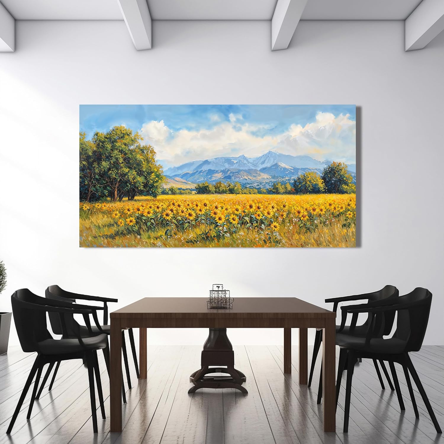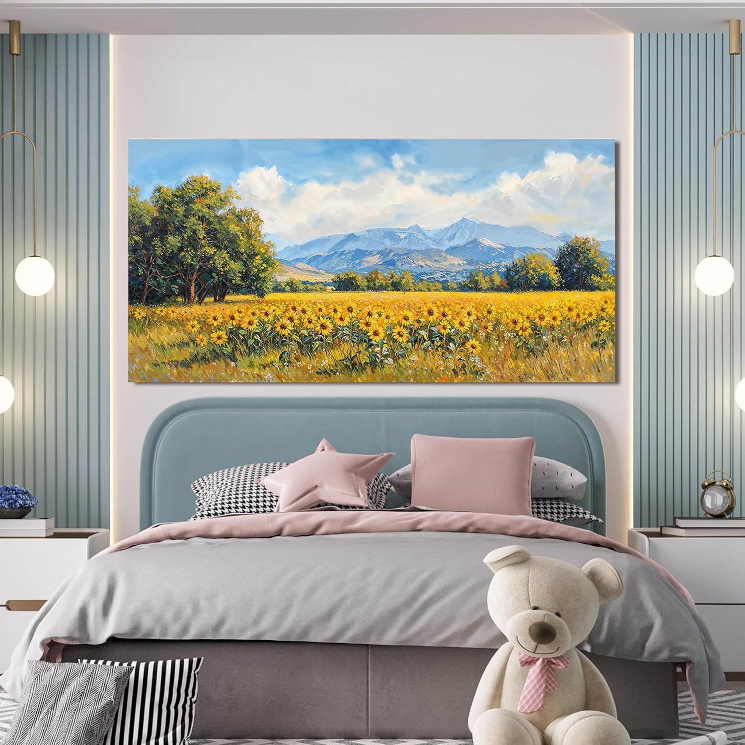 Canvas Oversized Wall Art Decor Large Wall Art Pictures for Living Room Canvas Art Wall Decor Mountain Wildflowers Wall Art Prints Landscape Artwork for Walls Bedroom Home Aesthetic Wall Art Decor 29"X58"