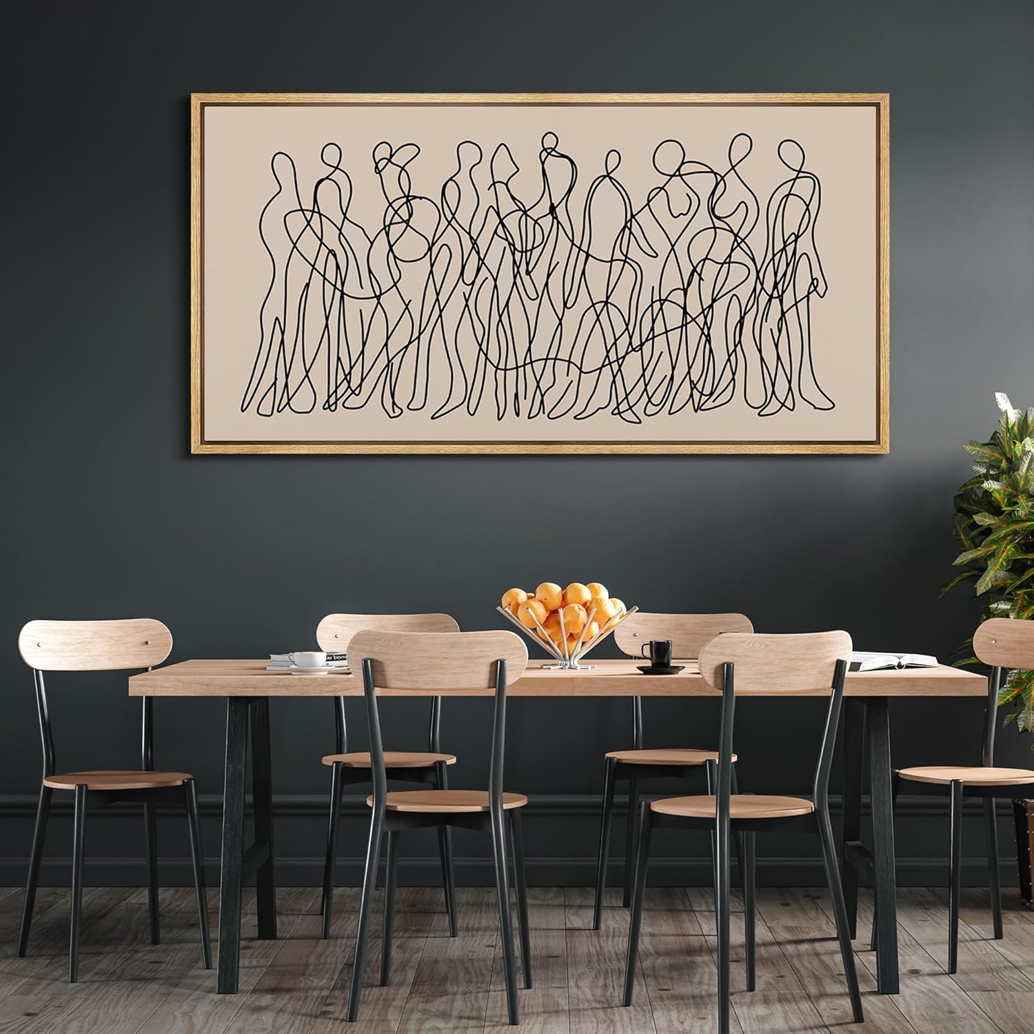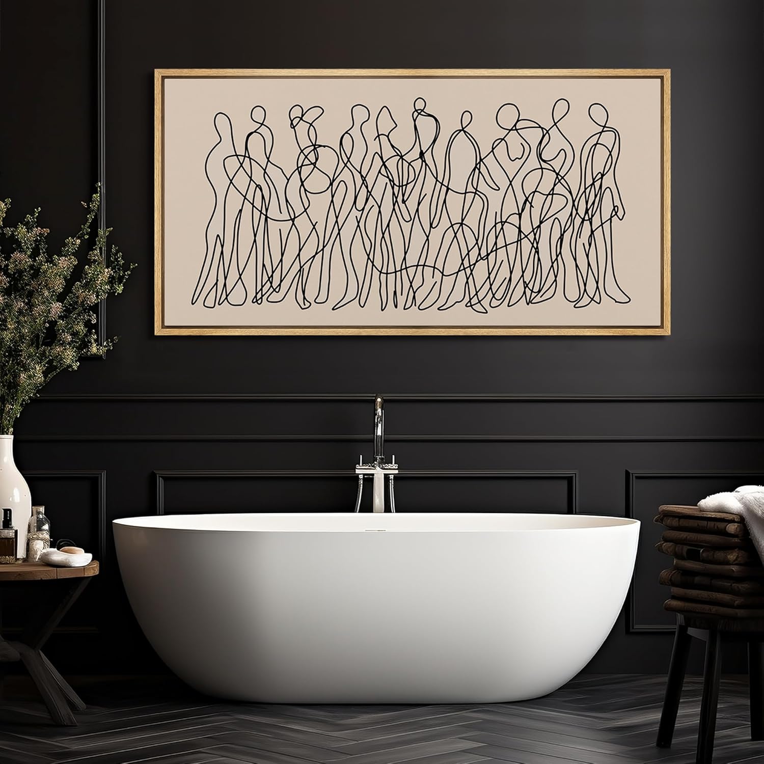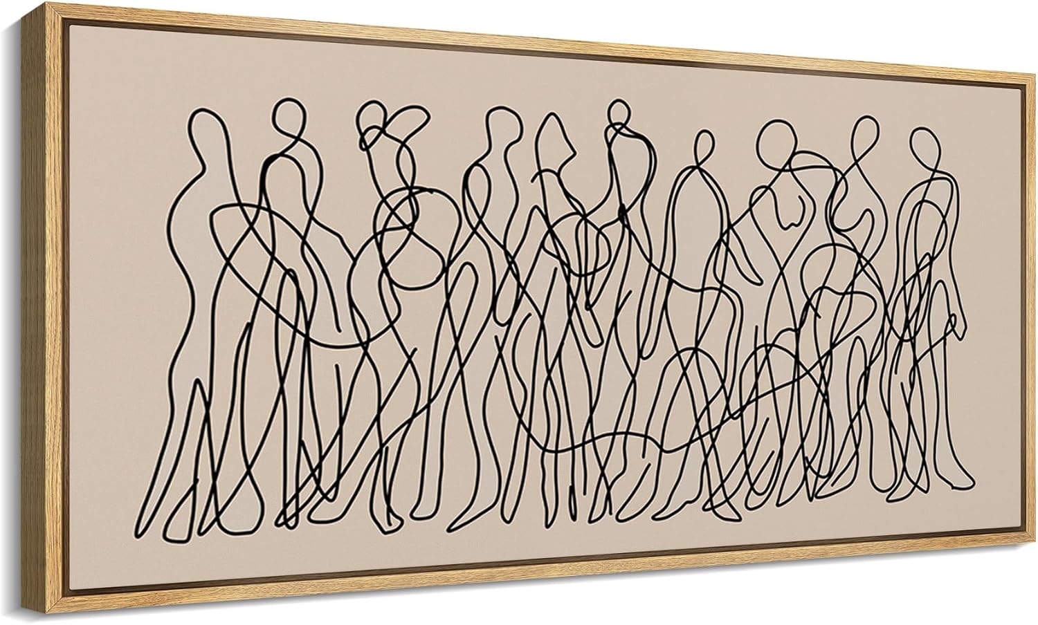 MUDECOR Extra Large Framed Canvas Print Wall Art Modern Line Art People Abstract Illustrations Decorative Colorful Multicolor for Bedroom - 60"x30"