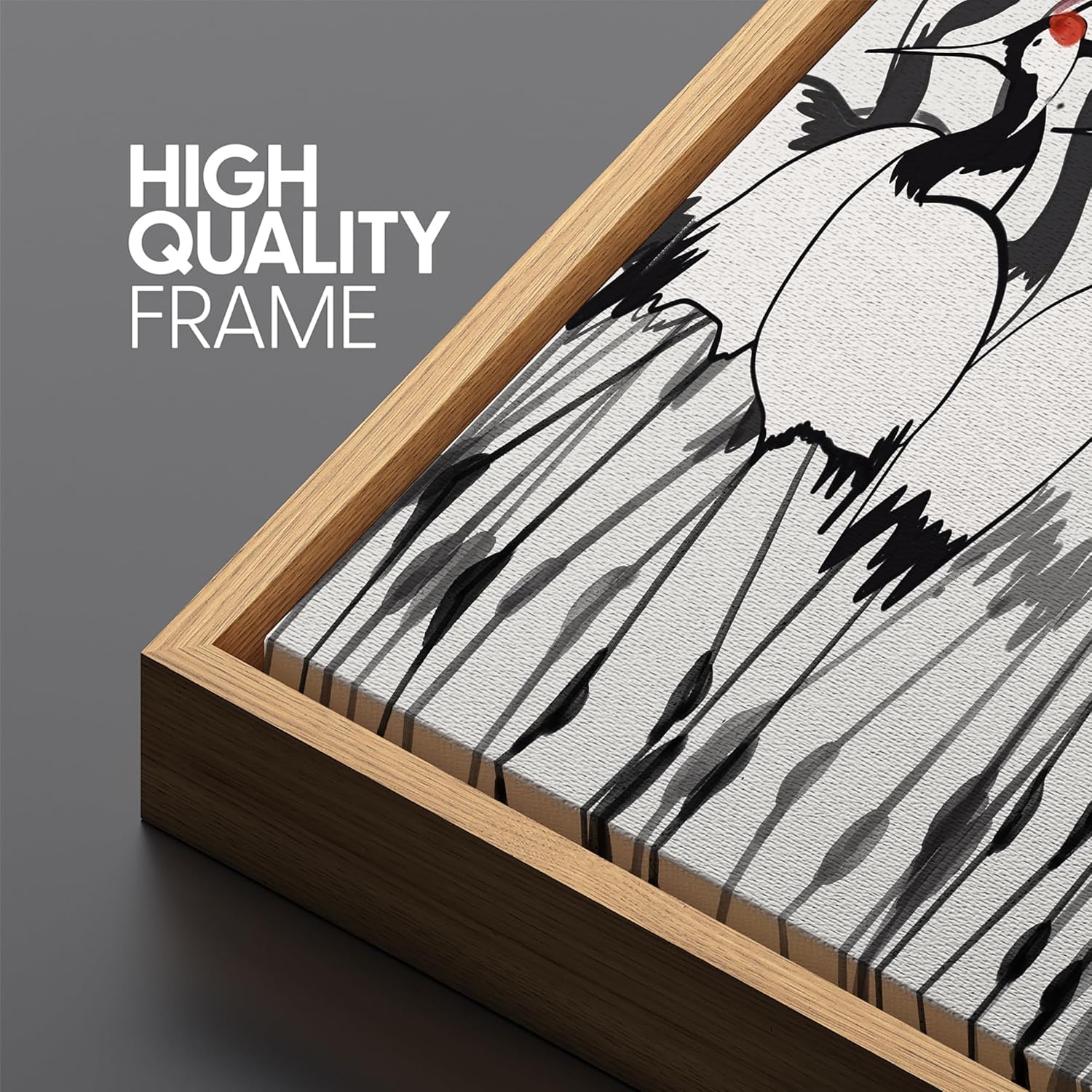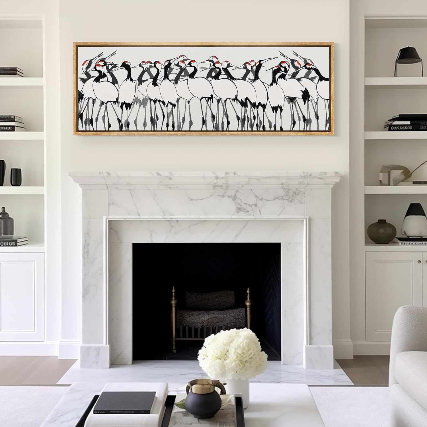 MUDECOR Large Framed Canvas Print Wall Art Minimalist Crane Flock Japanese Ink Style Bird Illustrations Decorative Colorful Multicolor for Bedroom - 60"x20"