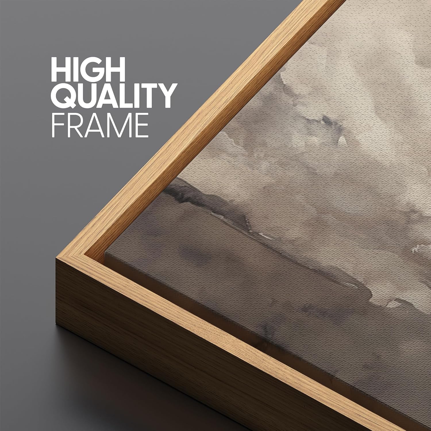 MUDECOR Extra Large Framed Canvas Print Wall Art Misty Landscape Neutral Tranquil Abstract Nature Painting in Earth Tones Illustrations Decorative Colorful Multicolor for Bedroom - 60"x30"