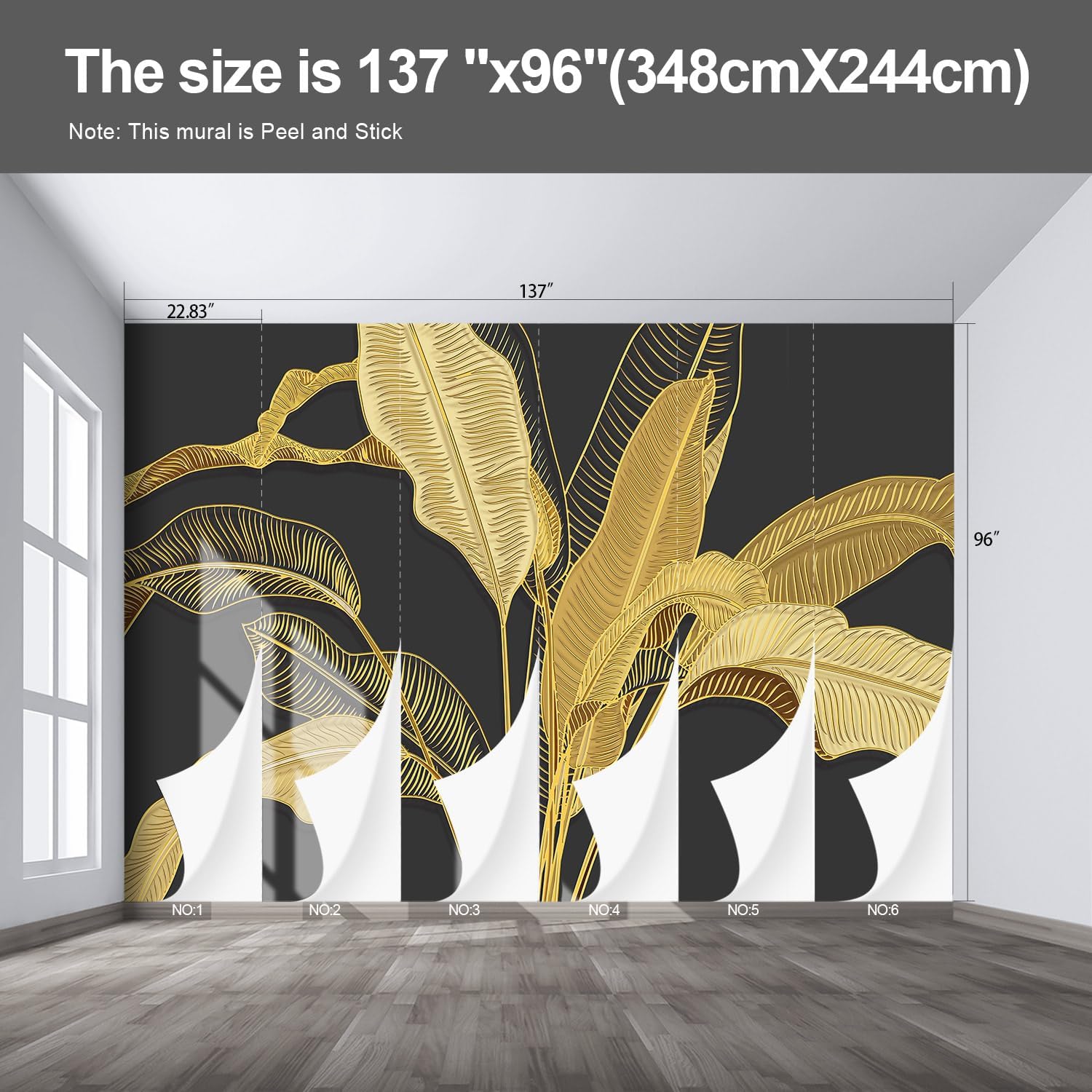 Gold Banana Leaf Wall murals Peel and Stick Wallpaper for Bedroom Living Room - 96"x137"