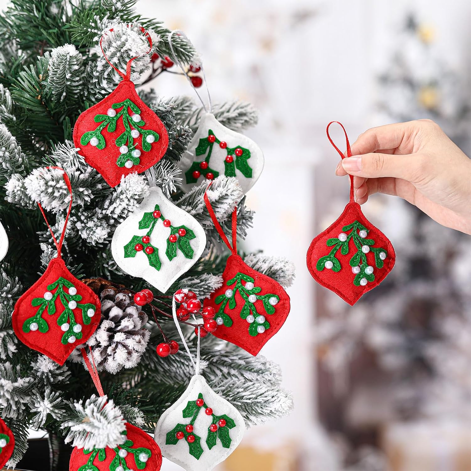 - Christmas 3D Elements: as you can see in the pictures, our felt Christmas ornaments come with 3D effect designs, embellished with popular Christmas colors, and shaped with classic Mistletoe and Holly leaves with Pearls style, which can create a strong festival atmosphere