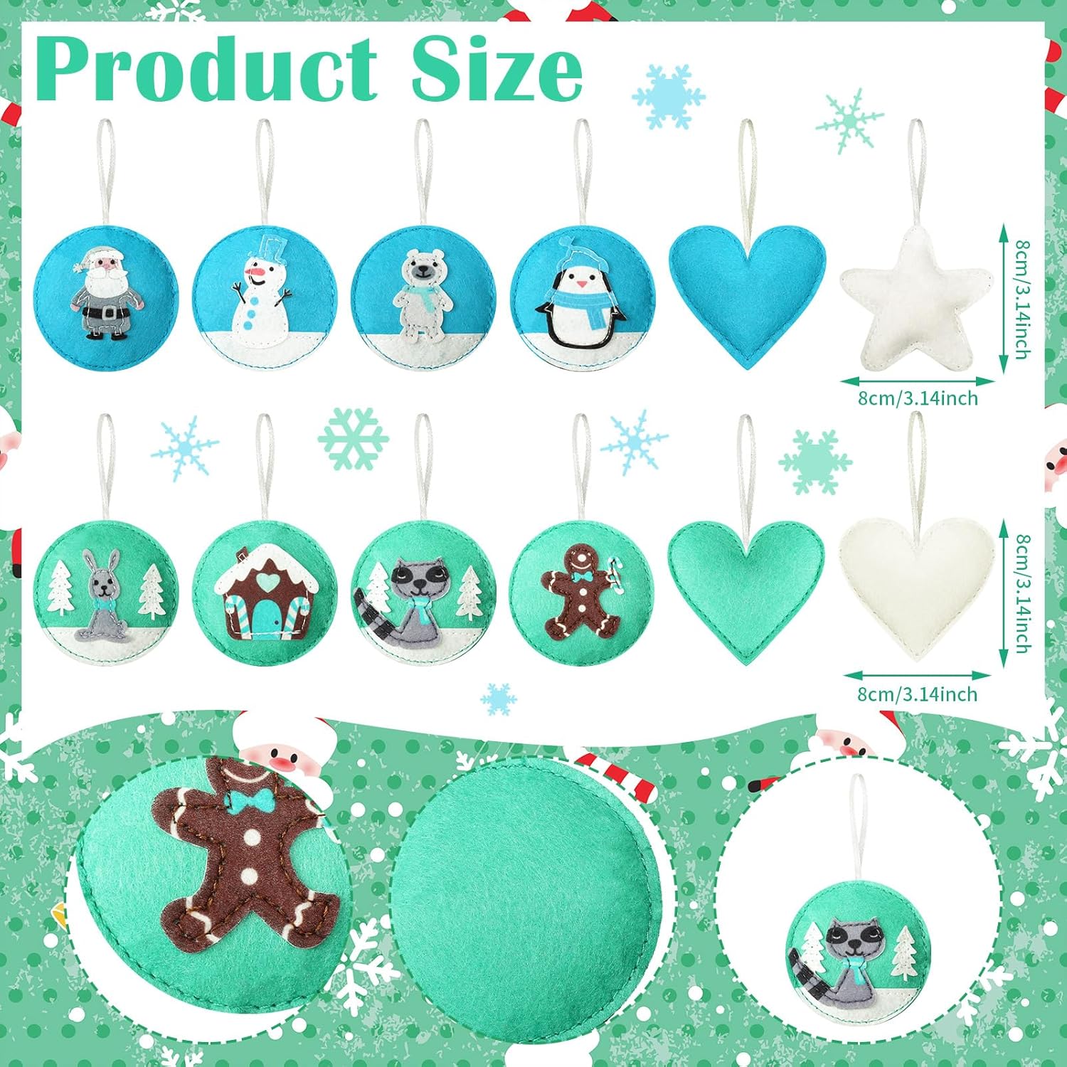 - Felt Christmas Ornaments 12 Styles: what you will receive are 12 pieces of 3D felt Christmas tree decorations with hanging loops, designed in 12 various styles, white mint and turquoise color combination for Christmas ornament,adorable and soft; Sufficient quantities and assorted types could fully meet your Christmas party tree decoration needs and satisfy your personal preferences