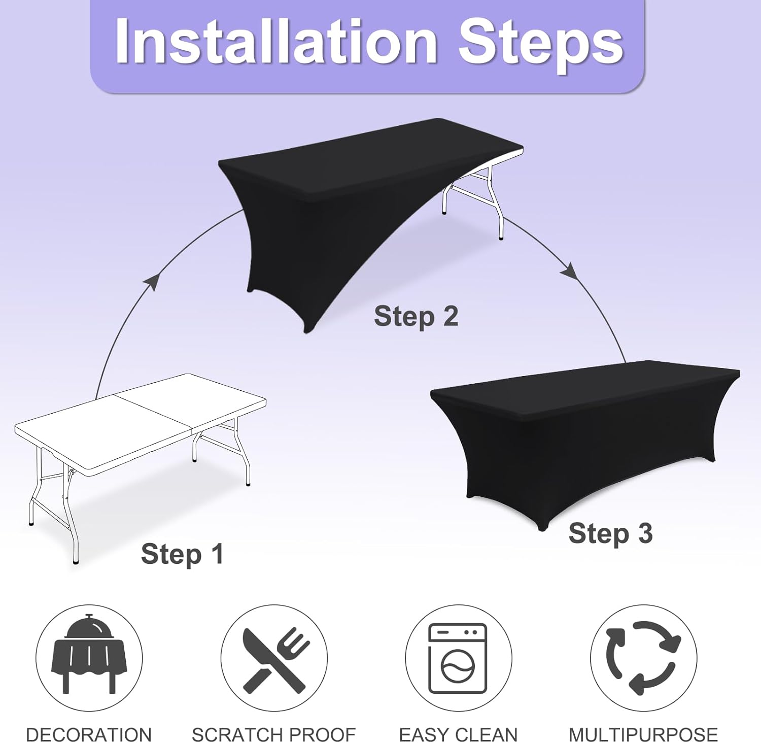 ABCCANOPY 6 FT Black Spandex Table Cover Wrinkle Resistant Fitted Stretch Tablecloth Reuse for Rectangular Folding Table Patry Event Wedding Banquet Protector 2 Pack