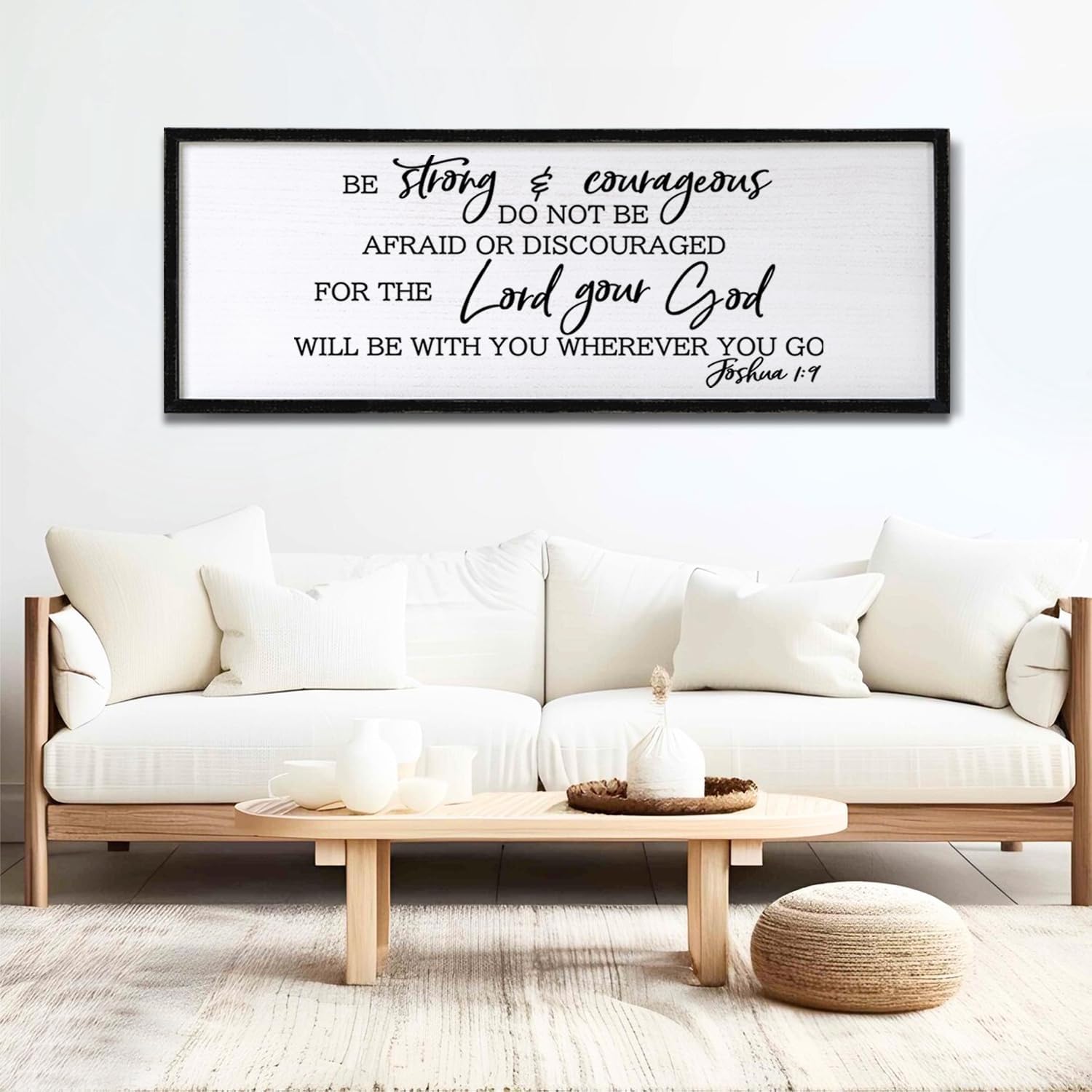 - 【Encouraging Words】 Be strong And courageous sign wall hanging adopt minimalist letters on the black background, showing constant reminder of faith and devotion in any setting and you passion for god, adding a touch of elegant, and classic beauty to your space and giving people a calming feeling.