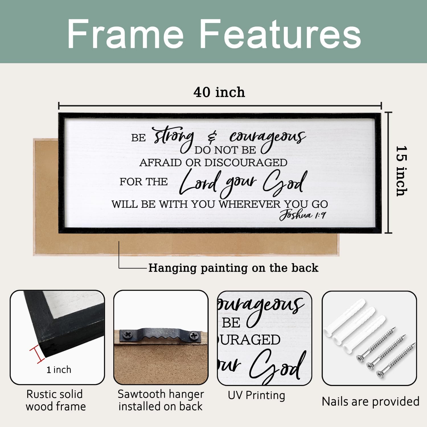 Be Strong And Courageous Sign Bible Verse Framed Wall Art, 40''×15'' Rustic Religious Christian Proverbs 3:5-6 Sign, Horizontal Holy Inspirational Catholic Scripture Decor