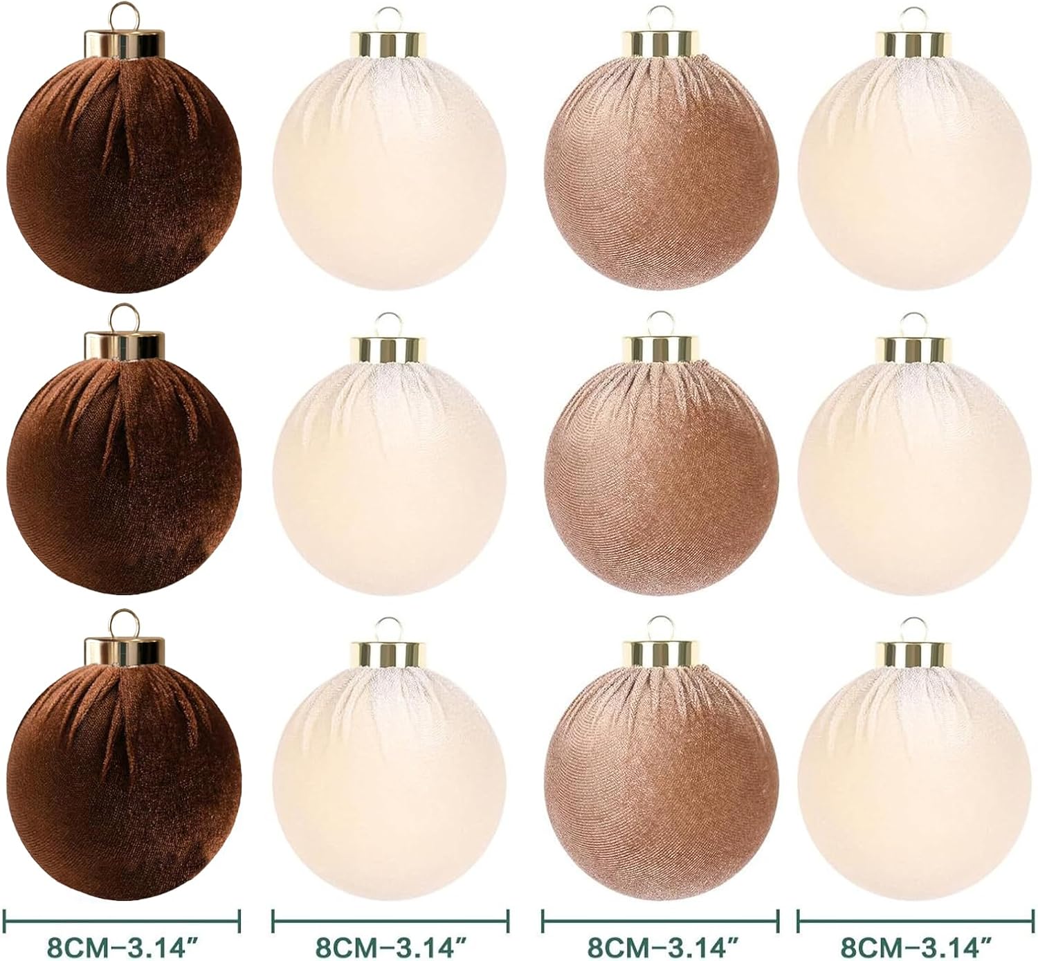 12Pcs Velvet Christmas Ornaments Balls,Brown Christmas Tree Decoration Shatterproof Ball with Hanging for Party Decor Multicolor Brown Beige 80mm/3.15in