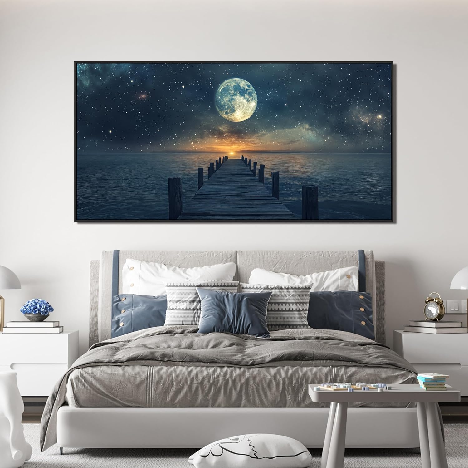 Canvas Wall Art Decor Large Framed Wall Art Prints Wall Art Pictures for Living Room Canvas Art Wall Decor Landscape Coastal Wall Art Star Moon Artwork for Walls Home Office Aesthetic Decor 29" x 58"